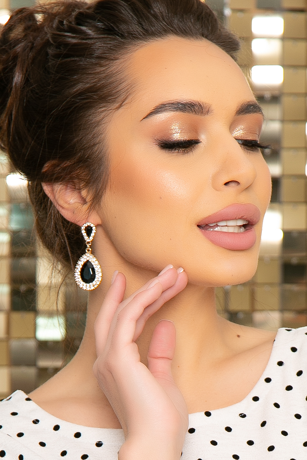 Серьги с камнями - это элегантный акцент вашего вечернего образа. Фома капли выглядит благородно и делает ваш образ утончённым. Камень обрамлён двумя рядами мерцающих кристаллов.