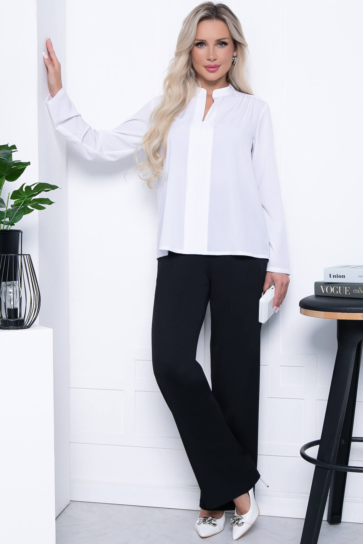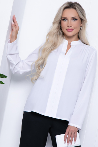 Блуза для создания лаконичного делового образа. Прямой крой, длинный втачной рукав. Горловина оформлена стойкой с разрезом. Такая модель будет гармонична в любых сочетаниях делового гардероба.