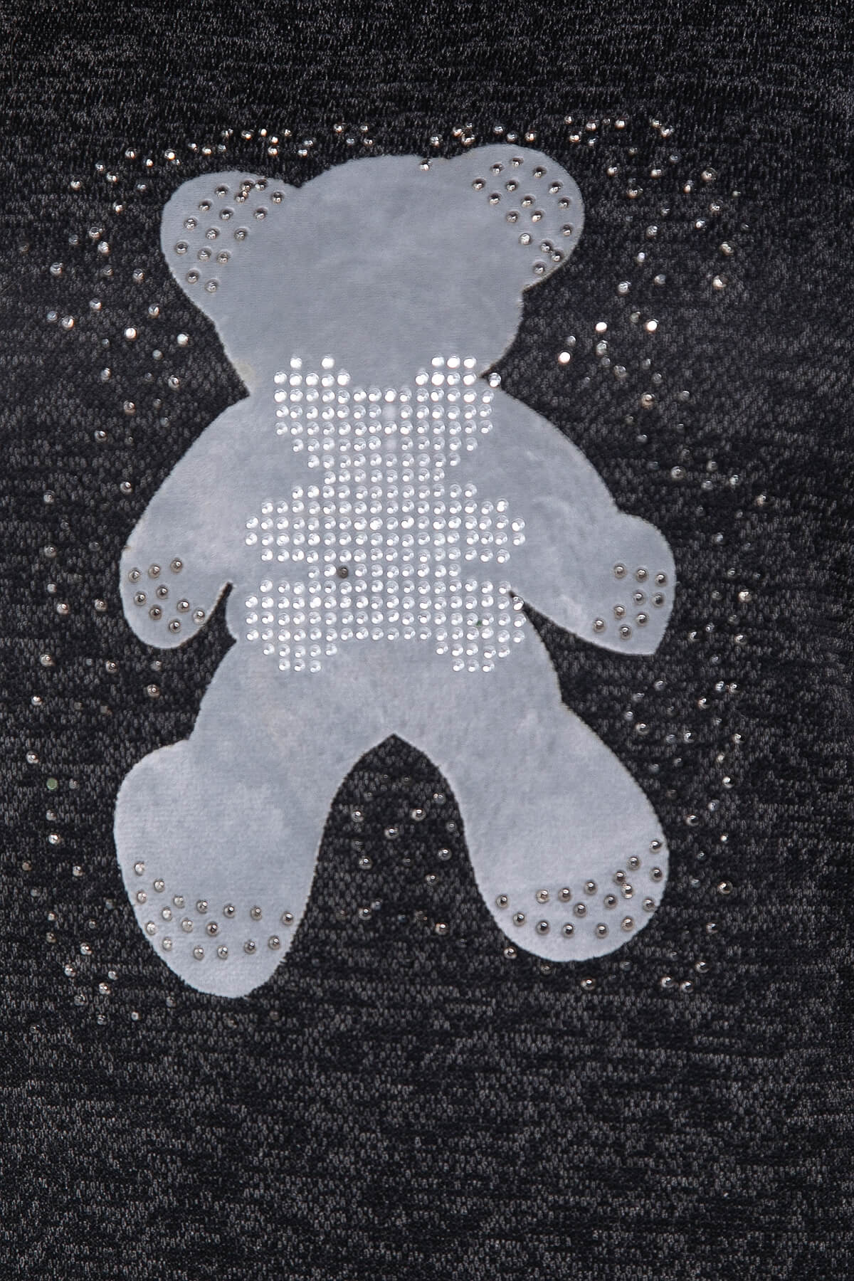 Настоящая находка для ценителей дизайнерских решений! Джемпер из трикотажа с аппликацией "Мишка" и стразами выглядит стильно и привлекательно. Рукав длинный, втачной, о низу манжет. Это универсальный повседневный вариант,который можно сочетать с юбками, брюками, джинсами.
