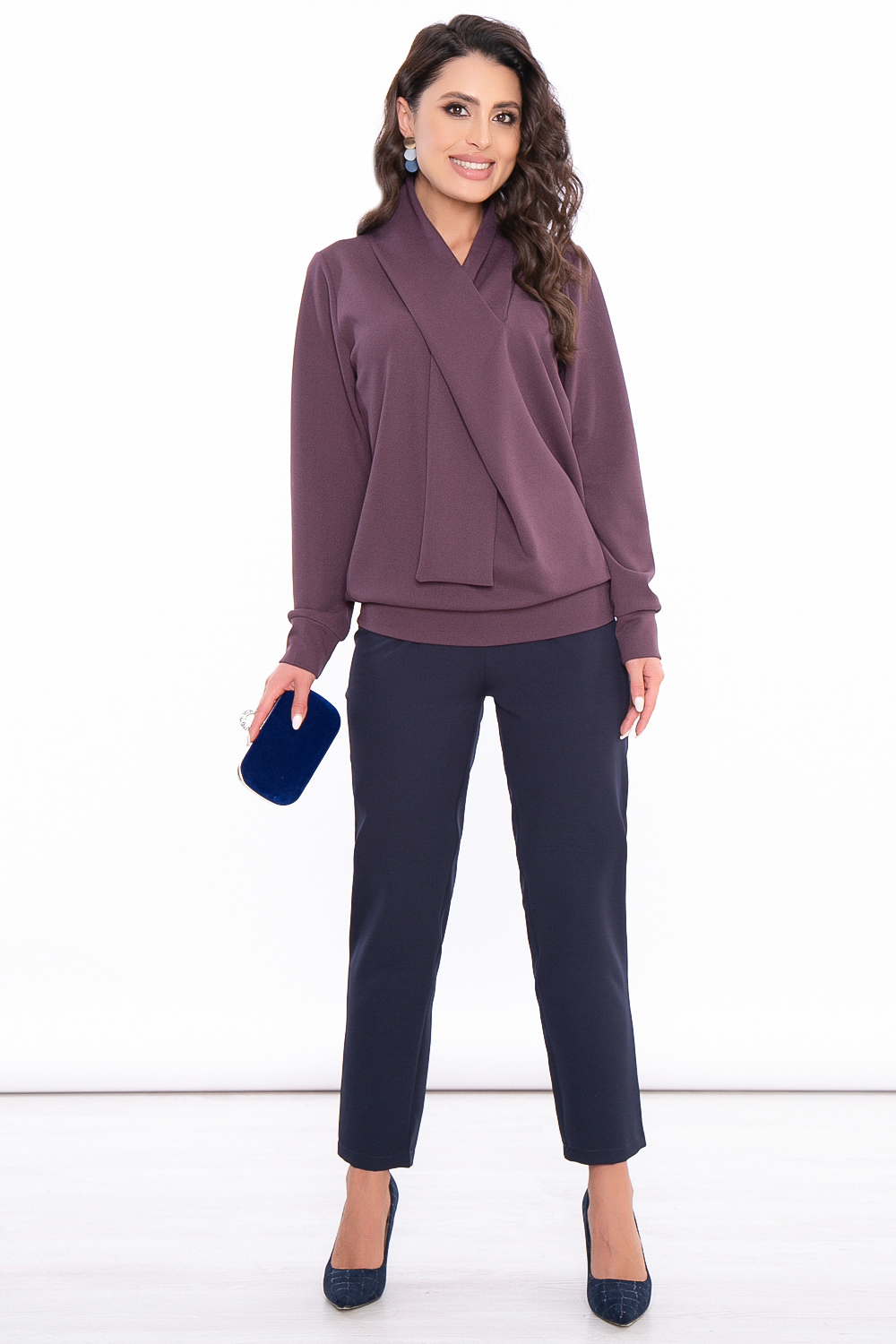 Дизайнерский джемпер с воротником-шарфом в красивом лиловом оттенке. Он однозначно внесет стильный акцент в Ваш повседневный гардероб.