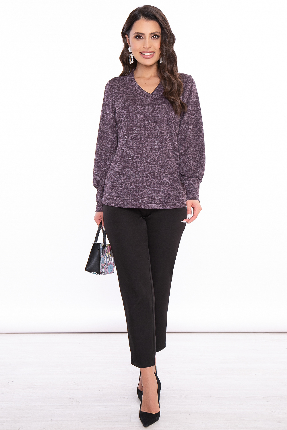 Джемпер в красивом фиолетовом оттенке с тонкой люрексной нитью прекрасно подойдет для создания женственного и стильного повседневного образа.