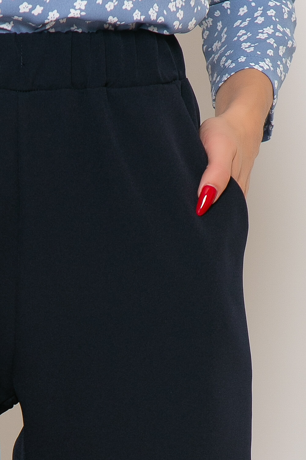 Классические брюки в классическом синем оттенке помогут Вам в создании изящных официальных образов. Брюки по талии оснащены резинкой, что позволяет добиться комфортной посадки по фигуре. В боковых швах есть карманы. Брюки подойдут для офисного и повседневного образа. Они не сковывают движений и выглядят стильно и лаконично, Вам останется только подобрать верх.