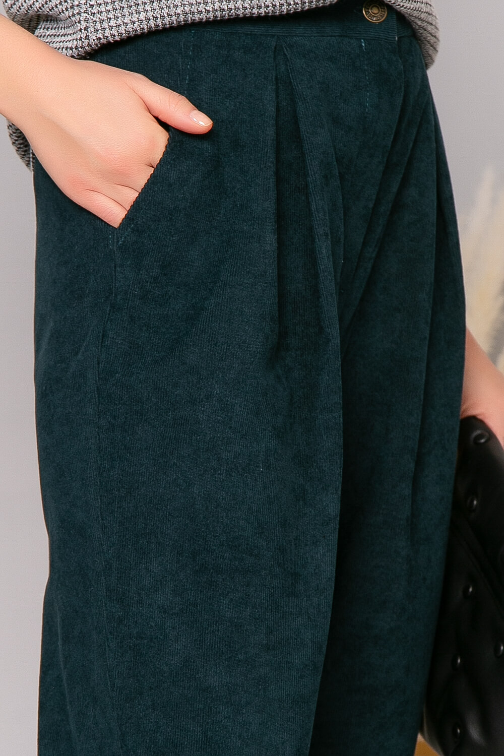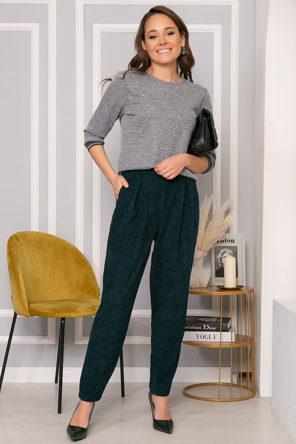 Брюки-бананы из вельвета для создания комфортного образа. Свободная форма брюк за счет складок на бедрах и сужения к низу создает модный женский силуэт. Брюки имеют карманы, по спинке пояс на резинке, обеспечивающий комфортное прилегание. Для создания экстравагантного образа сочетайте их с яркими джемперами. Тем, кто предпочитает классику, подойдут сочетания с изящными свитерами и кофтами.
