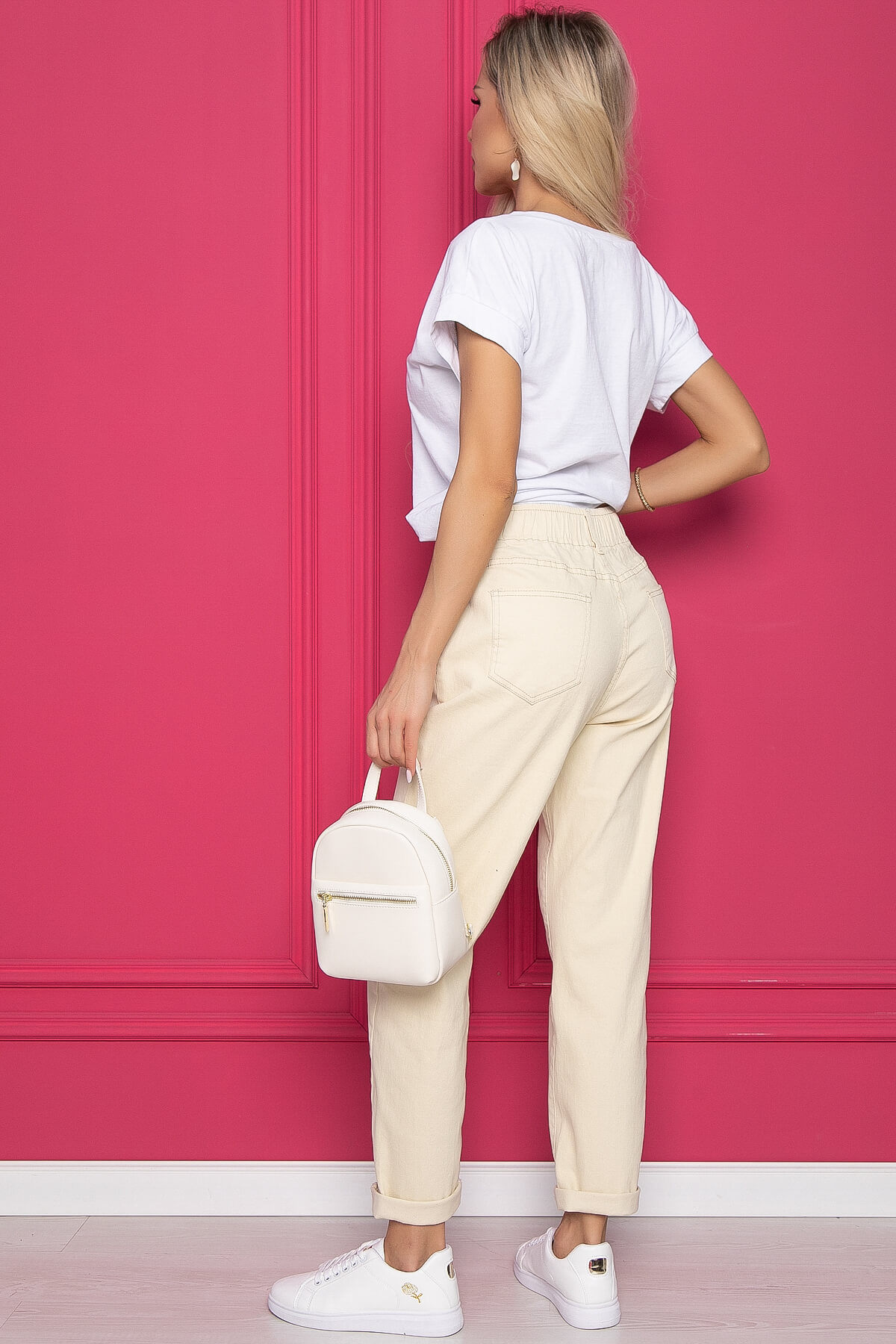 Бежевые джинсы идеальный выбор для стильного сочетания и комфорта. Будут уместны в повседневных образах, для работы, учебы и стильных вечерних луков. Талия на резинке, карманы расположены спереди и сзади.
