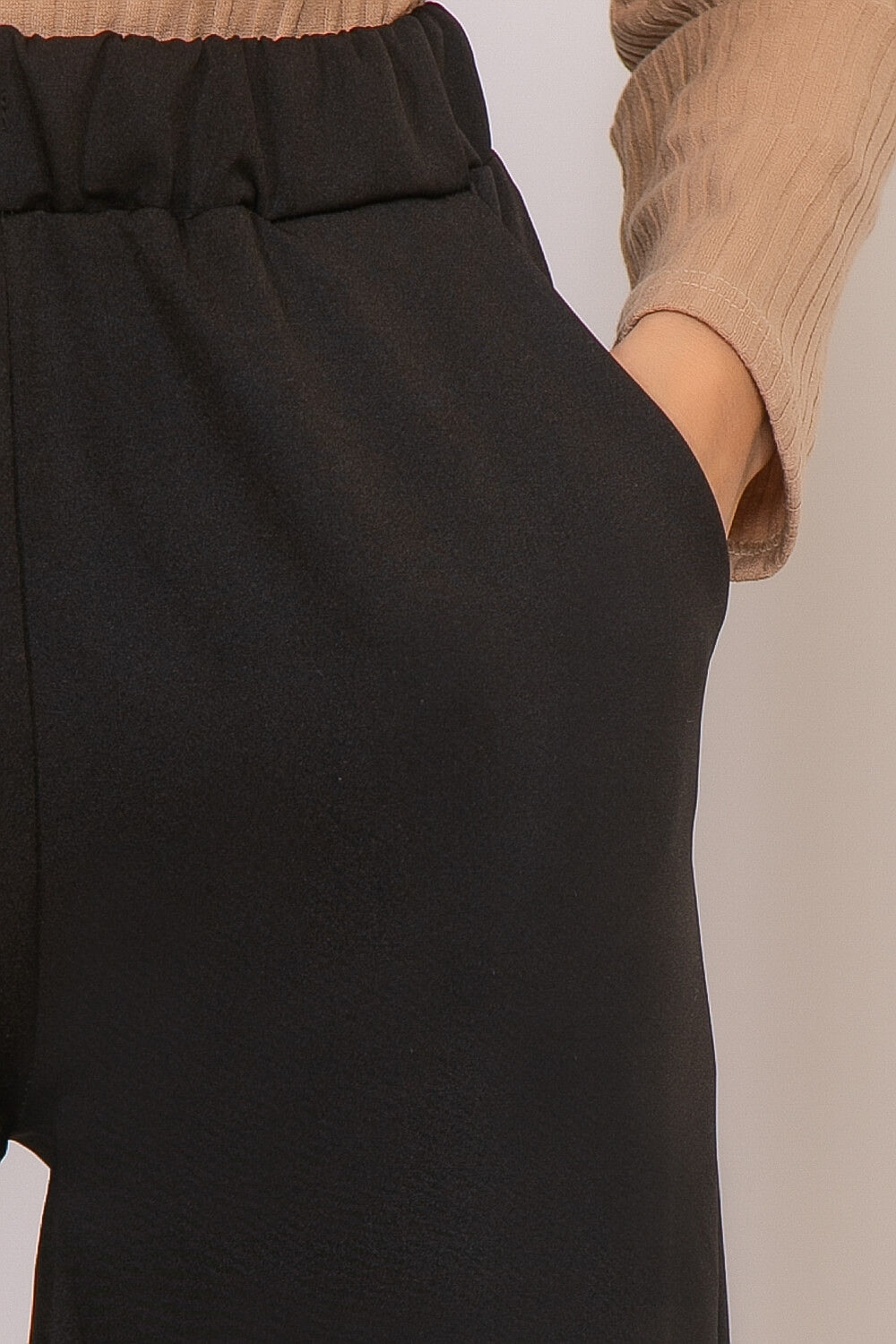 Классические брюки в классическом чёрном оттенке помогут Вам в создании изящных официальных образов. Брюки по талии оснащены резинкой, что позволяет добиться комфортной посадки по фигуре. В боковых швах есть карманы. Брюки подойдут для офисного и повседневного образа. Они не сковывают движений и выглядят стильно и лаконично, Вам останется только подобрать верх.