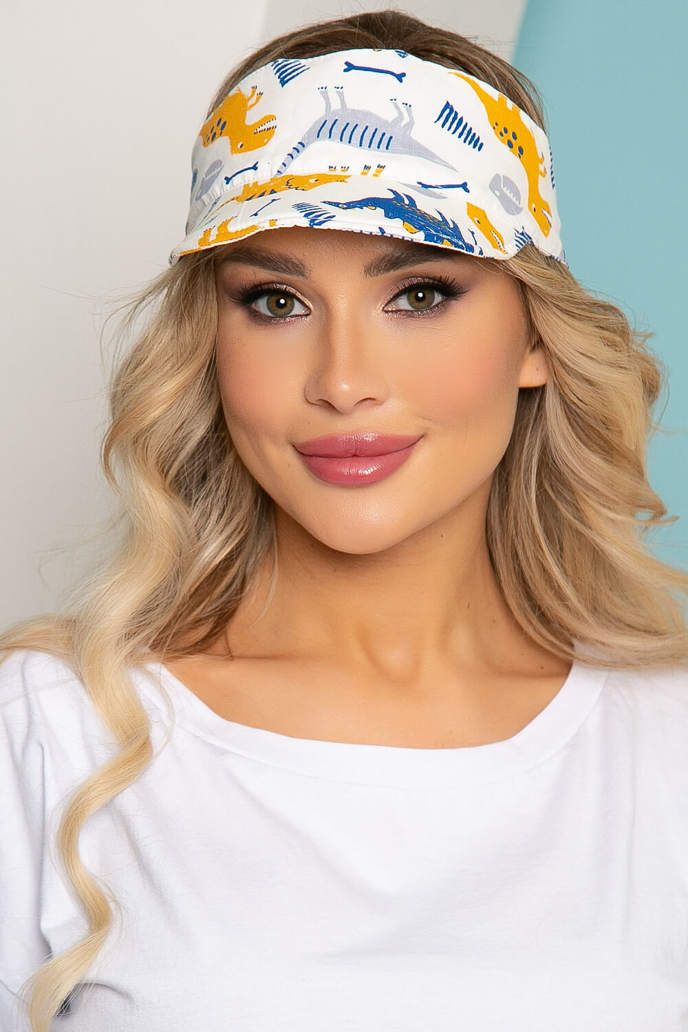 Козырек хлопковый (динозаврики, белый) КЗ6