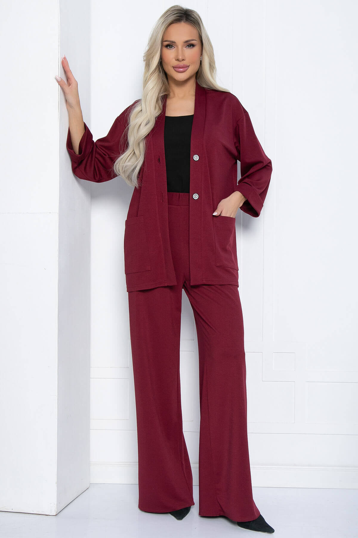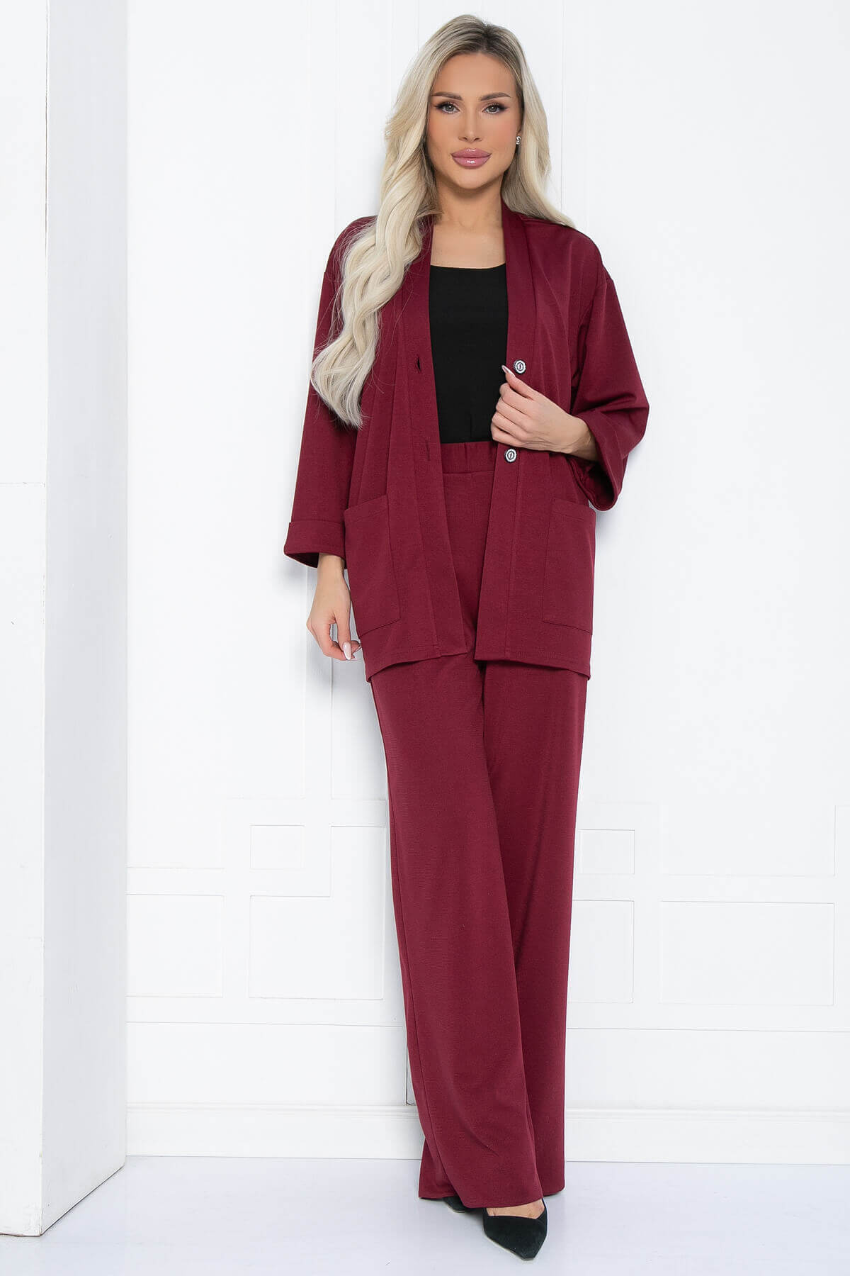 Женский брючный костюм полуприлегающего силуэта — это превосходный выбор для тех, кто стремится выглядеть элегантно и при этом оставаться в комфорте в любую погоду. Жакет с пуговицами и слегка приспущенными рукавами обеспечивает полную свободу движений, позволяя вам чувствовать себя уверенно и свободно. Брюки палаццо с резинкой на талии и карманами добавляют практичности и удобства, что делает этот костюм поистине универсальным и подходящим для различных ситуаций.