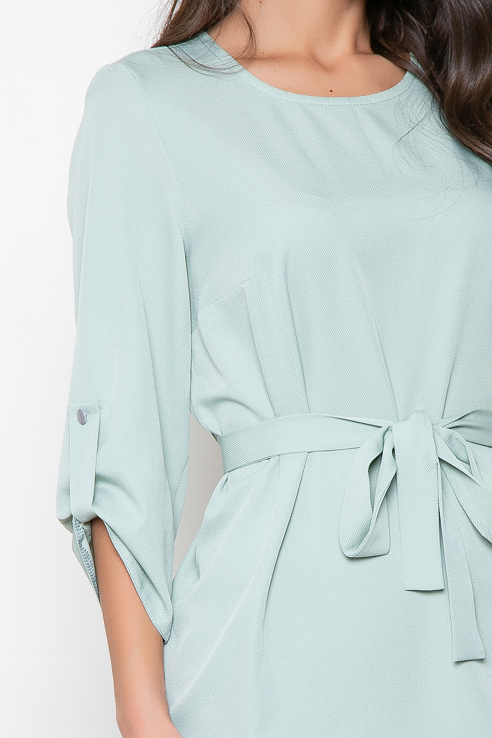 - Блуза свободного кроя, вырез горловины округлый. Рукав втачной, три четвертых. На рукаве пата с пуговкой;