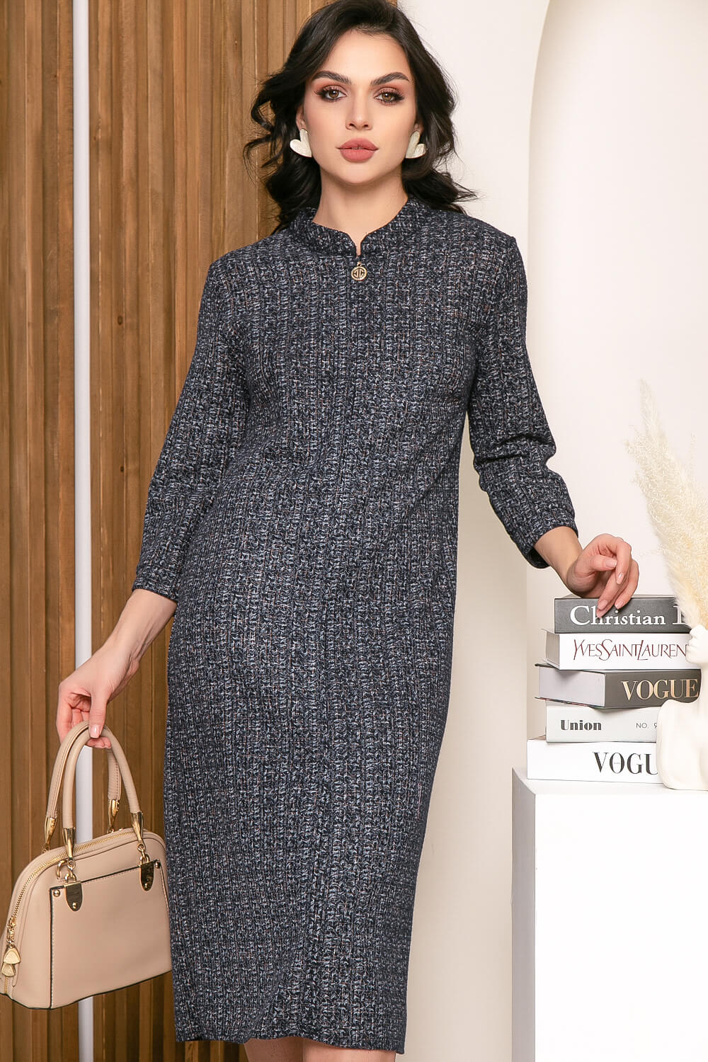 Элегантное платье в деловом стиле. Модель имеет лаконичный дизайн и комфортный силуэт, чтобы в офисе или на деловой встрече в нём было комфортно. Платье средней длины, по бокам есть разрезы. Рукав втачной, три четверти, на манжете. По переду застёгивается на молнию.