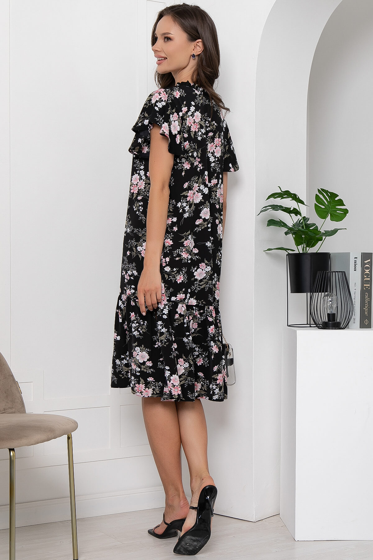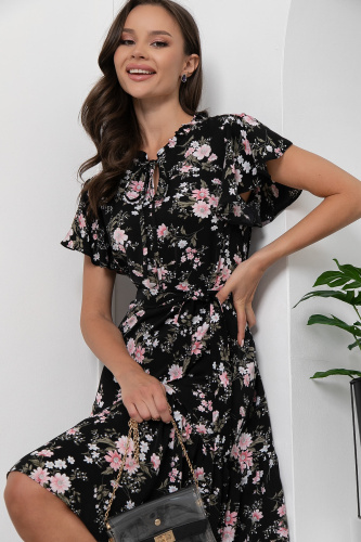 Платье "Хелен" (блэк/цветы) П6027