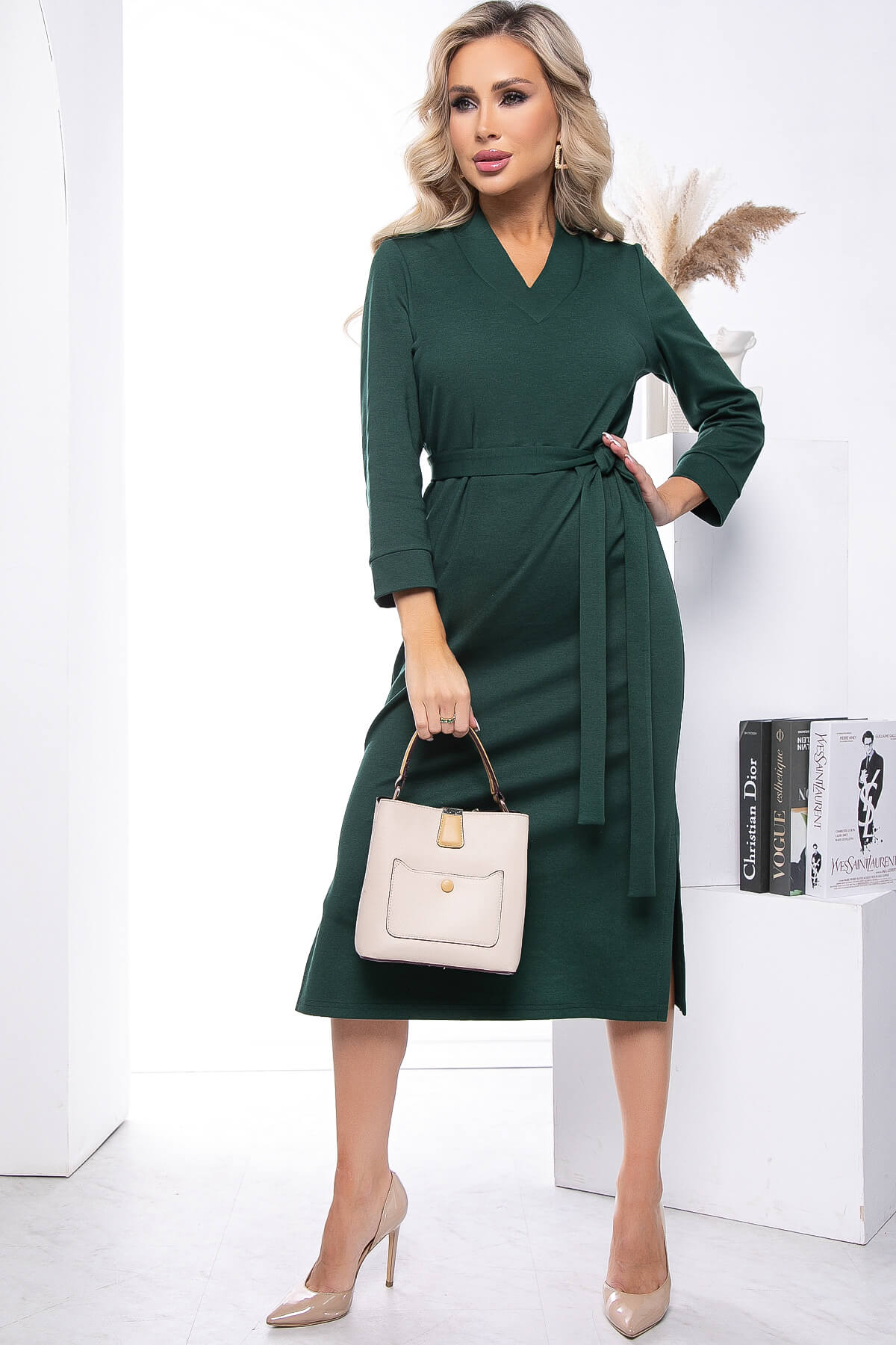 Платье из трикотажа для комфортного повседневного образа. Платья длины миди с минималистичным дизайном - находка для вашего гардероба. Они ни к чему не обязывают и сочетаются с разными вариантами обуви: туфлями, грубыми ботинками и элегантными ботильонами. Платье имеет втачной рукав три четверти на манжете. В комплект входит пояс из основной ткани.