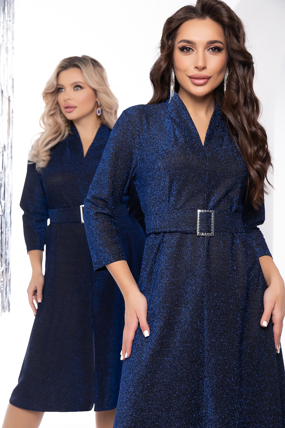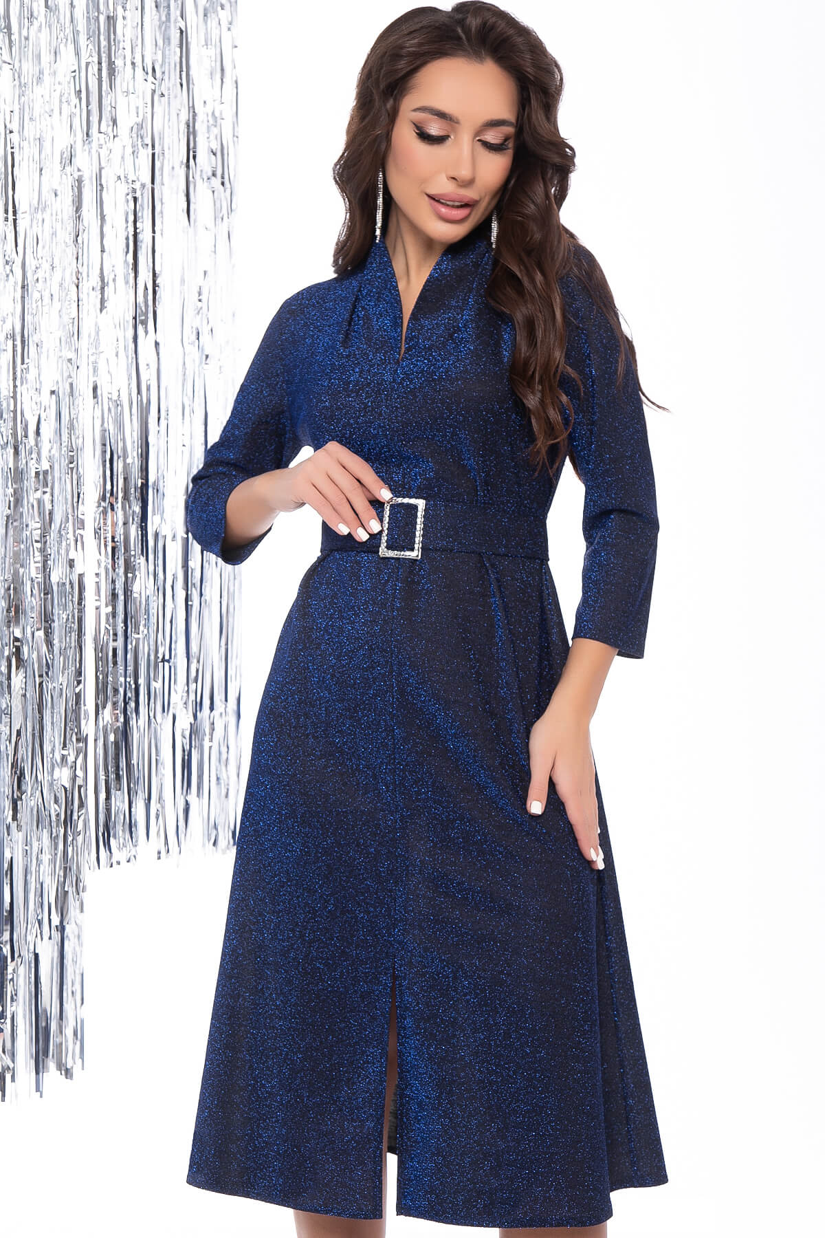 Неповторимый образ гарантирован! Невероятно глубокий и стильный синий оттенок выглядит стильно и женственно! Рукав втачной, три четверти. По низу изделия разрез, который придаст образу игривости. В комплект входит пояс из основной ткани с пряжкой, который подчеркнет все преимущества фигуры.