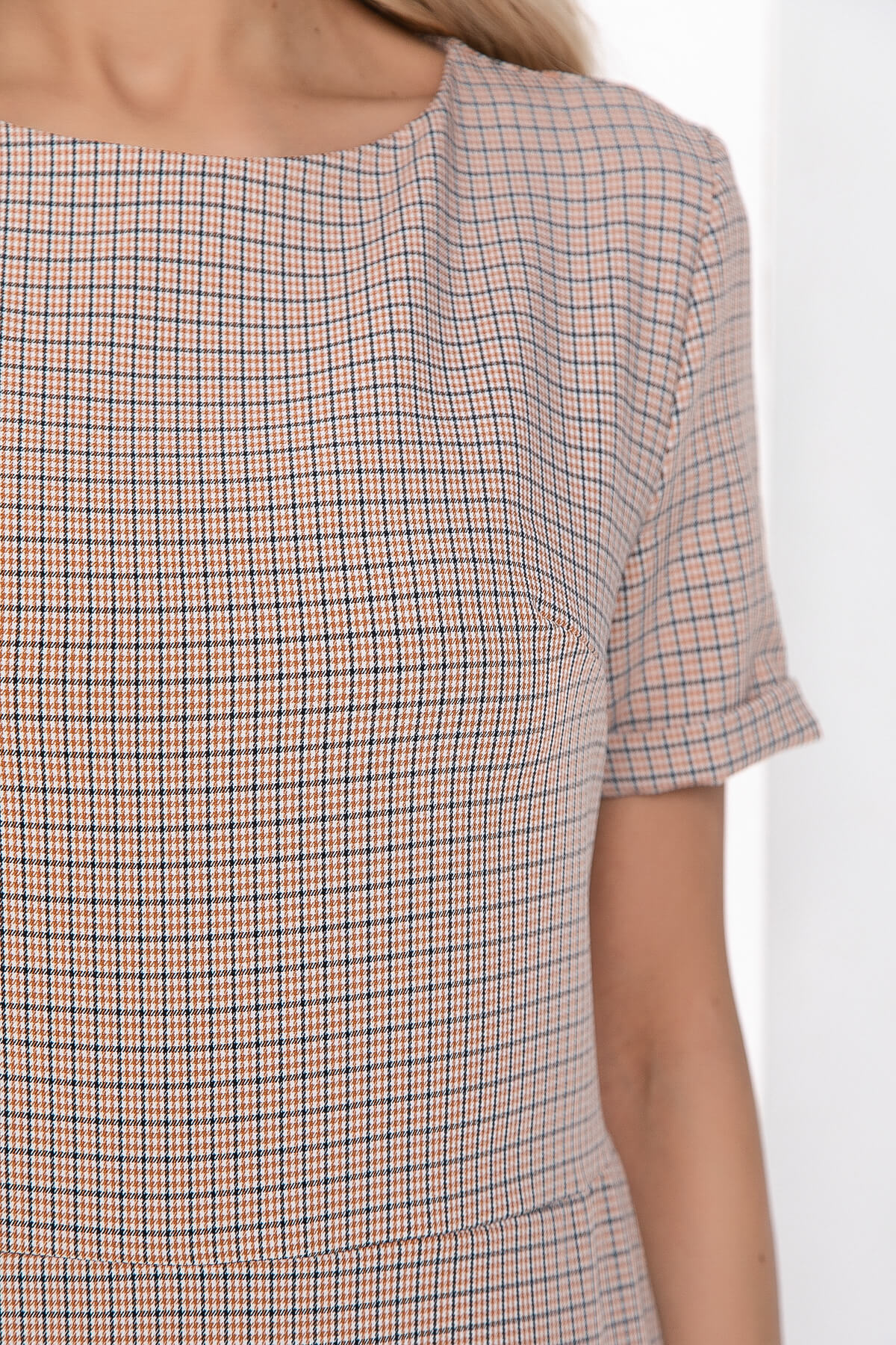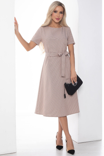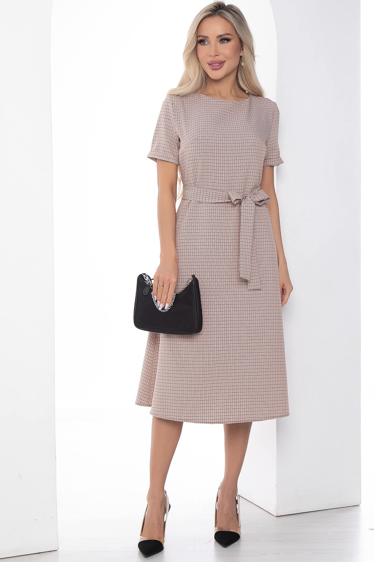 Платье в бежевом оттенке, прекрасный выбор на каждый день и на выход. Отлично дополнит ваш базовый гардероб. Рукав короткий с манжетом. В комплекте пояс из основной ткани.