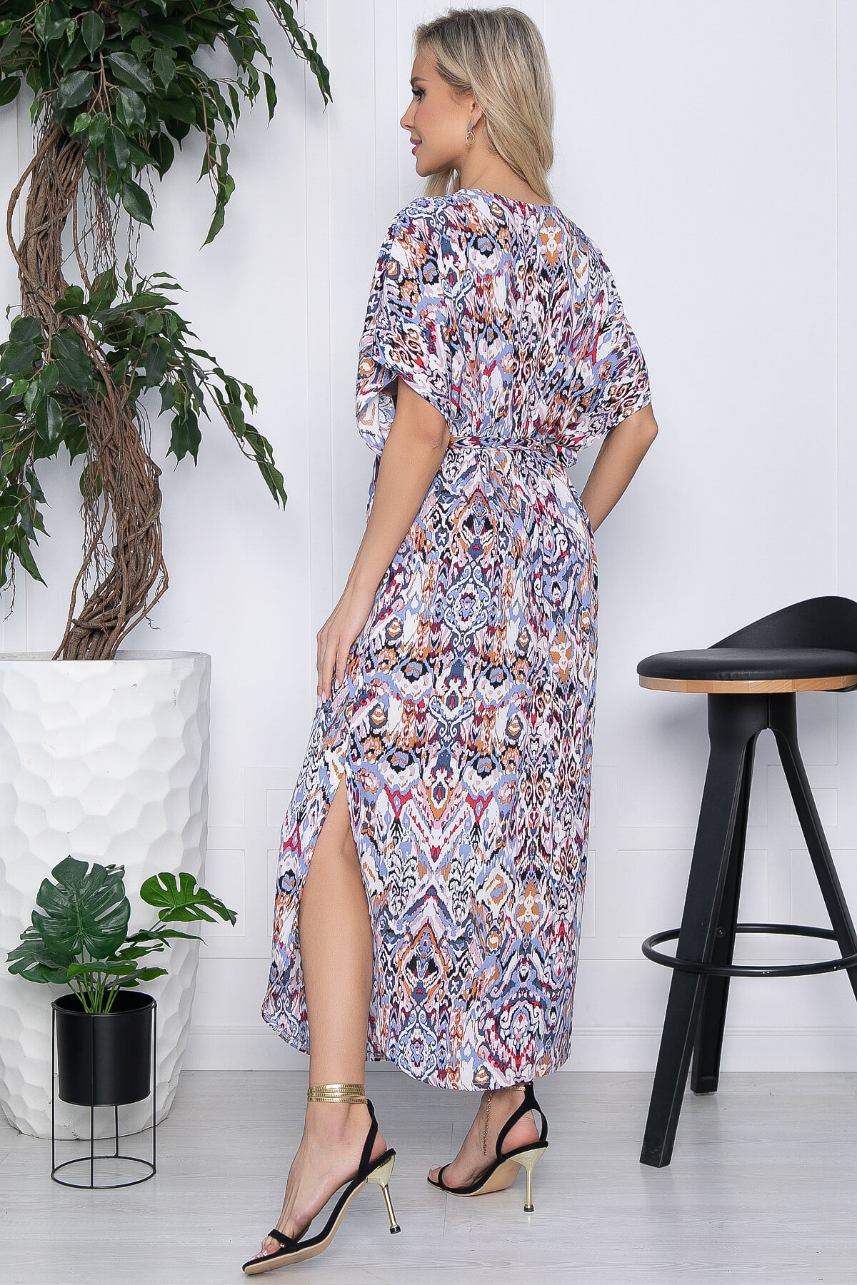 Летнее платье с поясом и рукавом в стиле летучая мышь, станет идеальным элементом гардероба в жаркую погоду. Платье невероятно комфортно за счет свободного кроя, поэтому может стать Вашим любимым для отдыха и на каждый день. Прекрасно подойдет для романтичных вечеров и вечерних прогулок у моря. В комплект входит пояс из основной ткани.