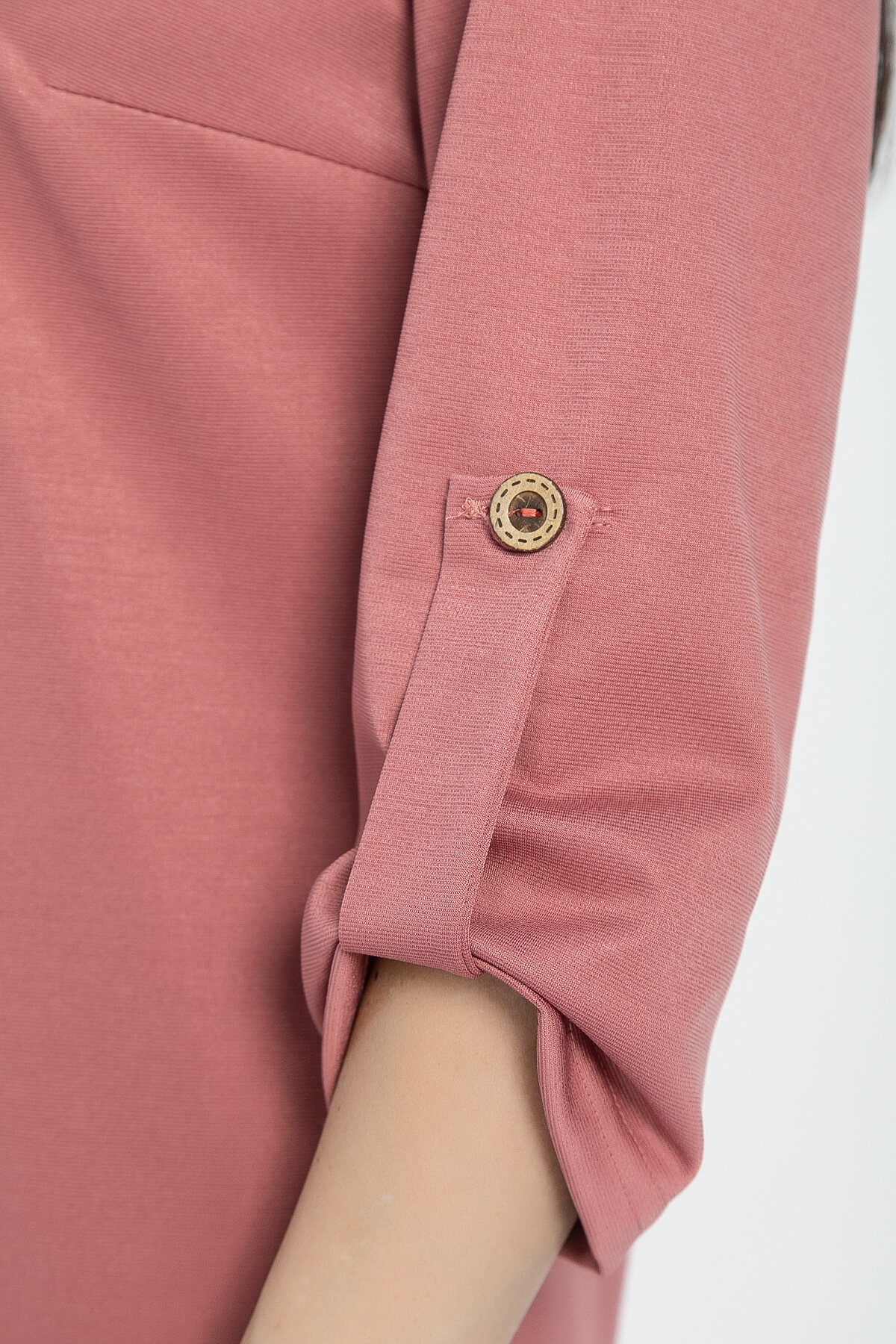 Базовое платье — это модель, которая сочетает в себе стиль и комфорт. Его рукав украшен декоративной патой, что придаёт ему особый шарм. Такое платье можно носить с любой обувью, оно универсально. А пояс из основной ткани изящно подчеркнёт вашу талию, сделав образ ещё более женственным.