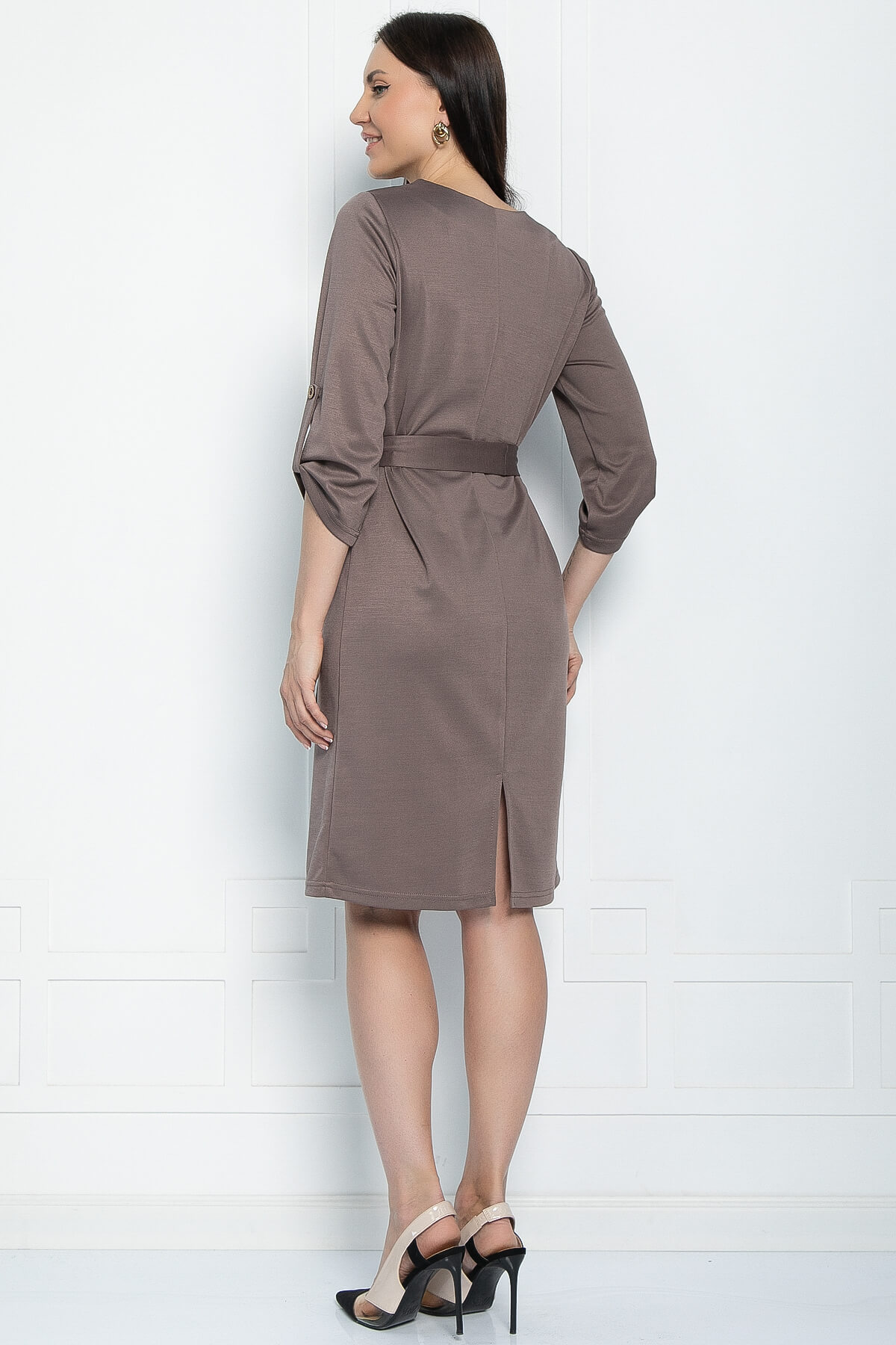 Базовое платье — это модель, которая сочетает в себе стиль и комфорт. Его рукав украшен декоративной патой, что придаёт ему особый шарм. Такое платье можно носить с любой обувью, оно универсально. А пояс из основной ткани изящно подчеркнёт вашу талию, сделав образ ещё более женственным.