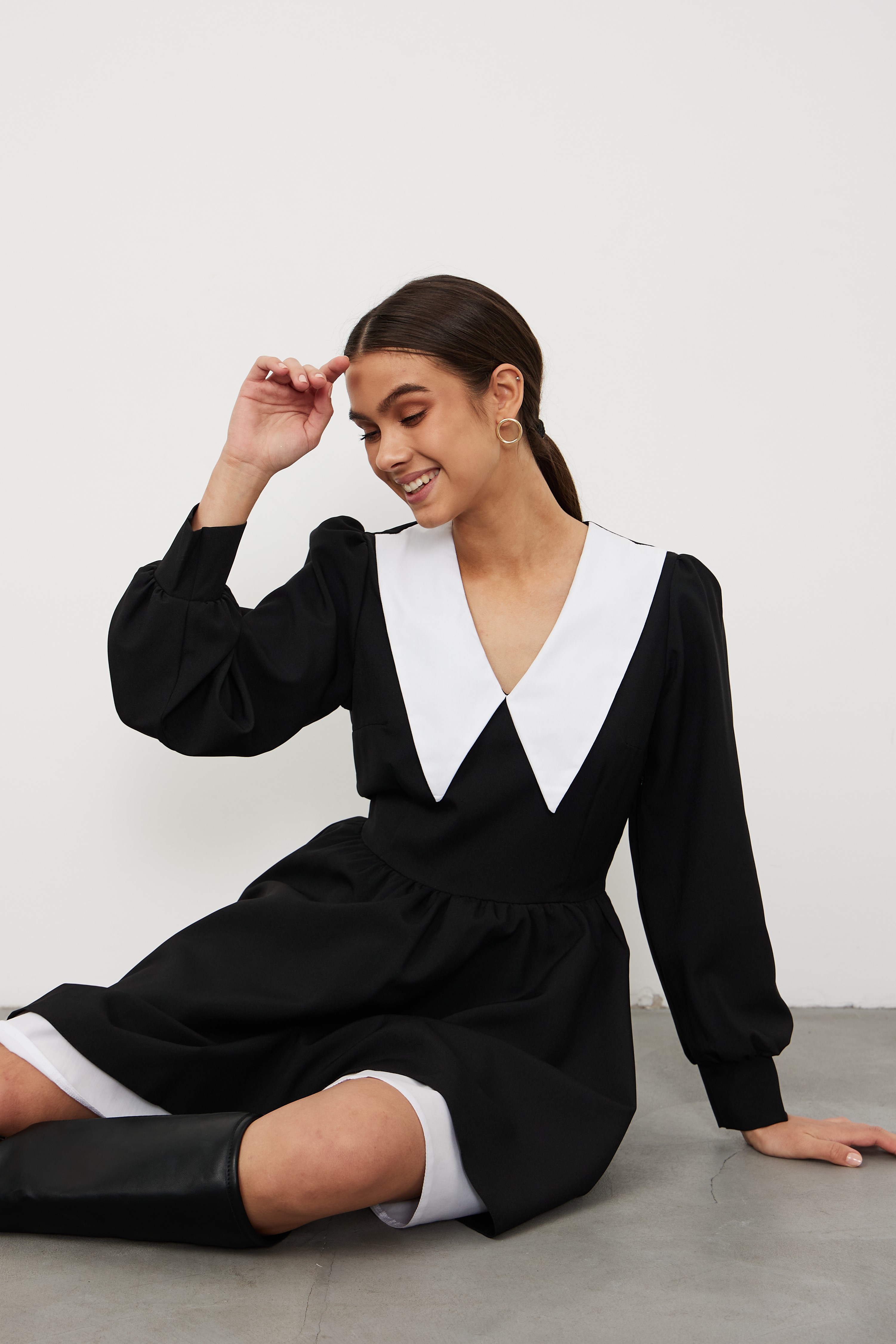 Черное платье с белым воротником и подъюбником НЕ СЪЕМНЫМ — это неотъемлемая часть вашего гардероба, которая считается классикой. Легкое воздушное платье с белым воротником с заостренными углами вытягивает визуально вашу шею, делая ее более длинной, изящной. Рукав фонарик длинный, юбка пышная свободная, декольте V-образное закрытое, молния сбоку, платье без пояса и принта, подъюбник и воротник не съемные. Данное трендовое платье считается школьное, повседневное, офисное, коктейльное, классическое, базовое. Для более высоких женщин платье будет длинной мини (короткое), но в разумных пределах (модель на фото 175 см). Для девушек маленького роста (невысоких) (менее 160) платье будет до колен. Платье подойдет каждой девочке-подростку, молодежи, школьницы. Покрой и ткань очень приятные к телу, что есть неотъемлемой частью выбора. Сочетание нашего платья с красивой обувью и аксессуарами автоматически подойдет для любого праздника: выпускной, свадьба, выписка и многие другие торжества. Но также можно его надевать и в школу на последний звонок или 1 сентября, и на работу, и просто на прогулку с подружкой или с детьми.