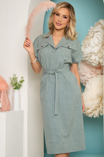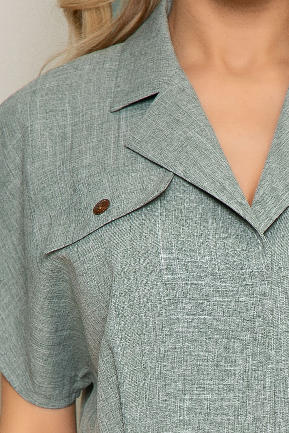 Дизайнерское платье средней длины, которое подойдёт, как для работы в офисе, так и для праздничного мероприятия. Платье прямого кроя, отрезное по линии талии с защипами по переду. Верхняя часть платья, безусловно, является акцентной: отложной воротник, цельнокроенный рукав, клапаны с пуговками создают неповторимый образ.