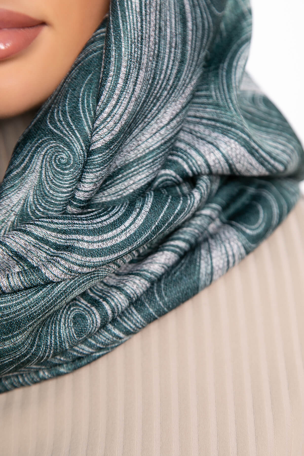 Трикотажный снуд легко драпируется в два оборота. Является альтернативой шапкам и капюшонам. Интересный оттенок снуда позволяет сочетать его практически с любым цветом верхней одежды.