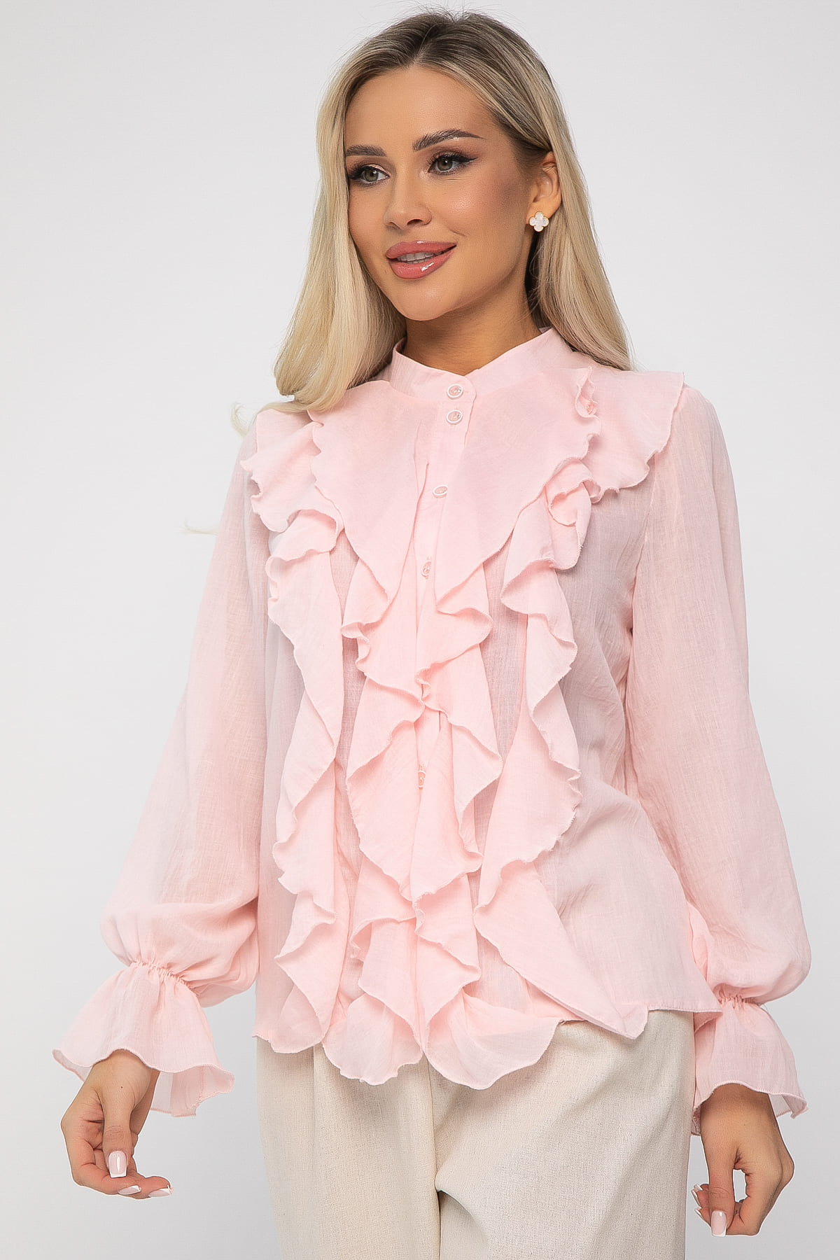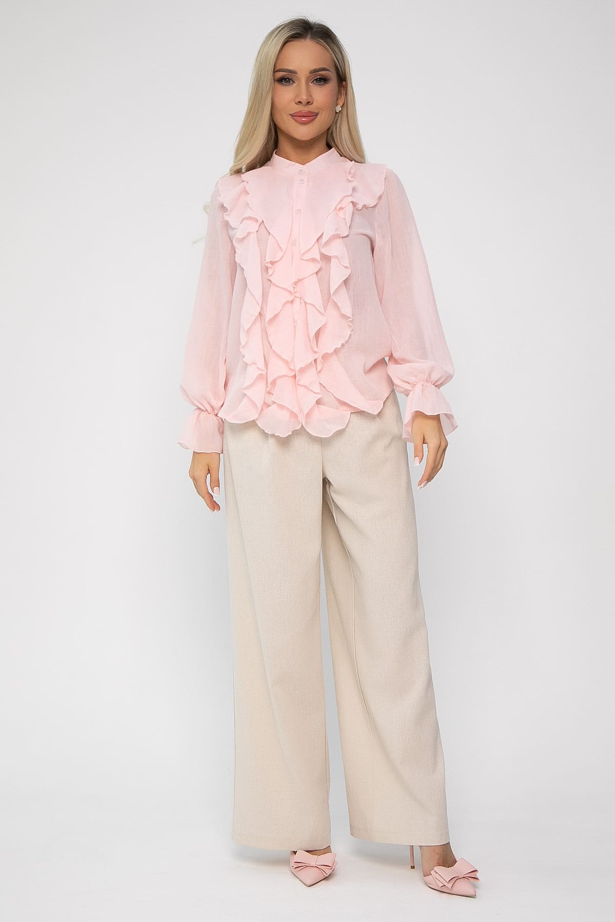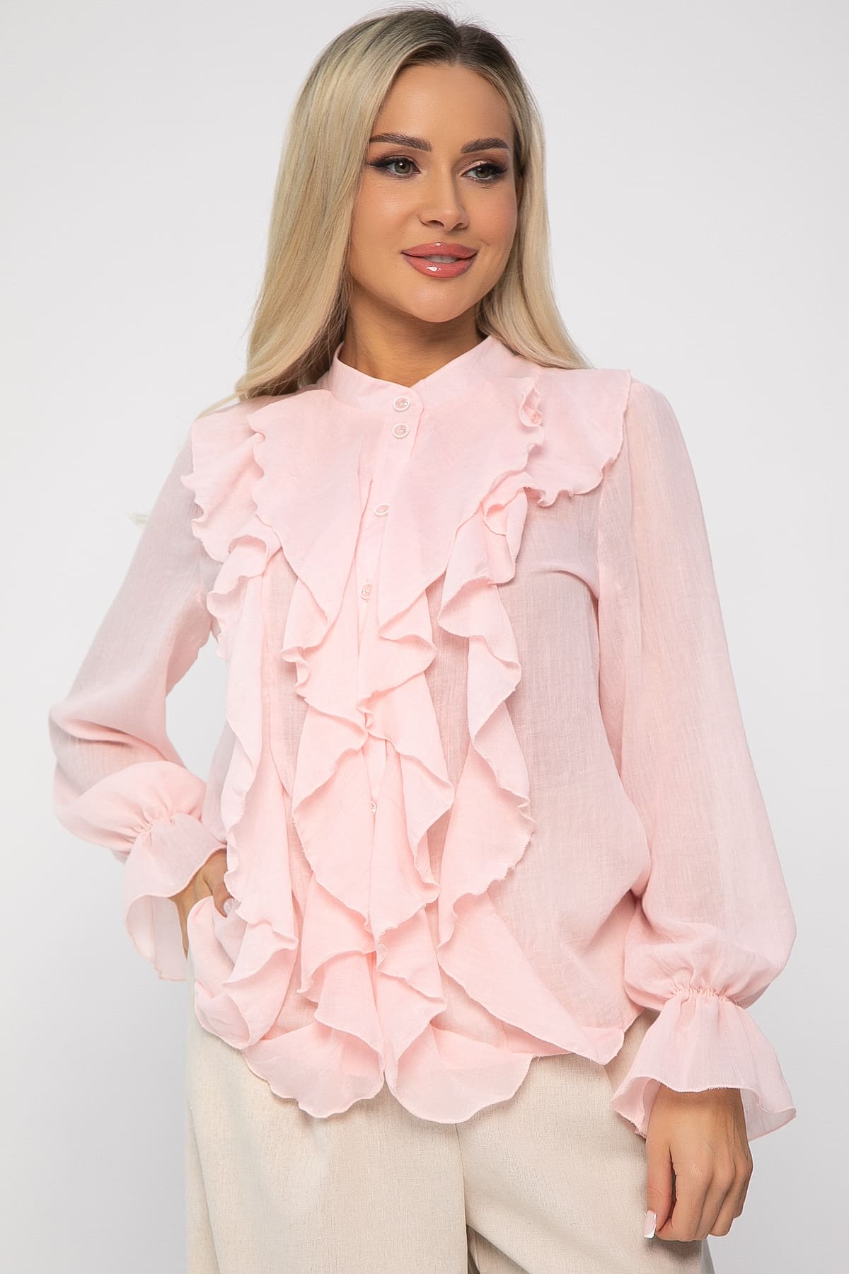 Легкая блуза из натурального хлопка с воланами украсит ваш летний гардероб. С ней можно создать много образов, как повседневных, так и нарядных. Благодаря натуральному составу, материал изделия приятно носить, а также в нем комфортно жаркими летними днями. Декоративные элементы в виде воланов на груди и рукавов-клеш добавляют образу женственности и уникальности.