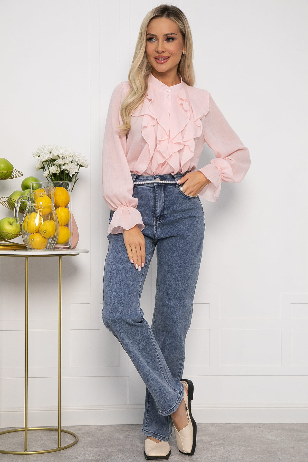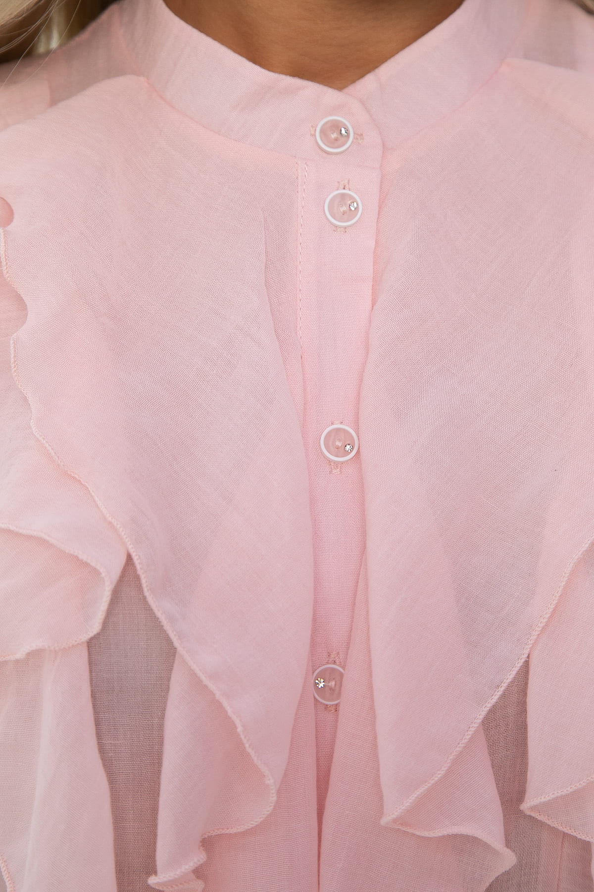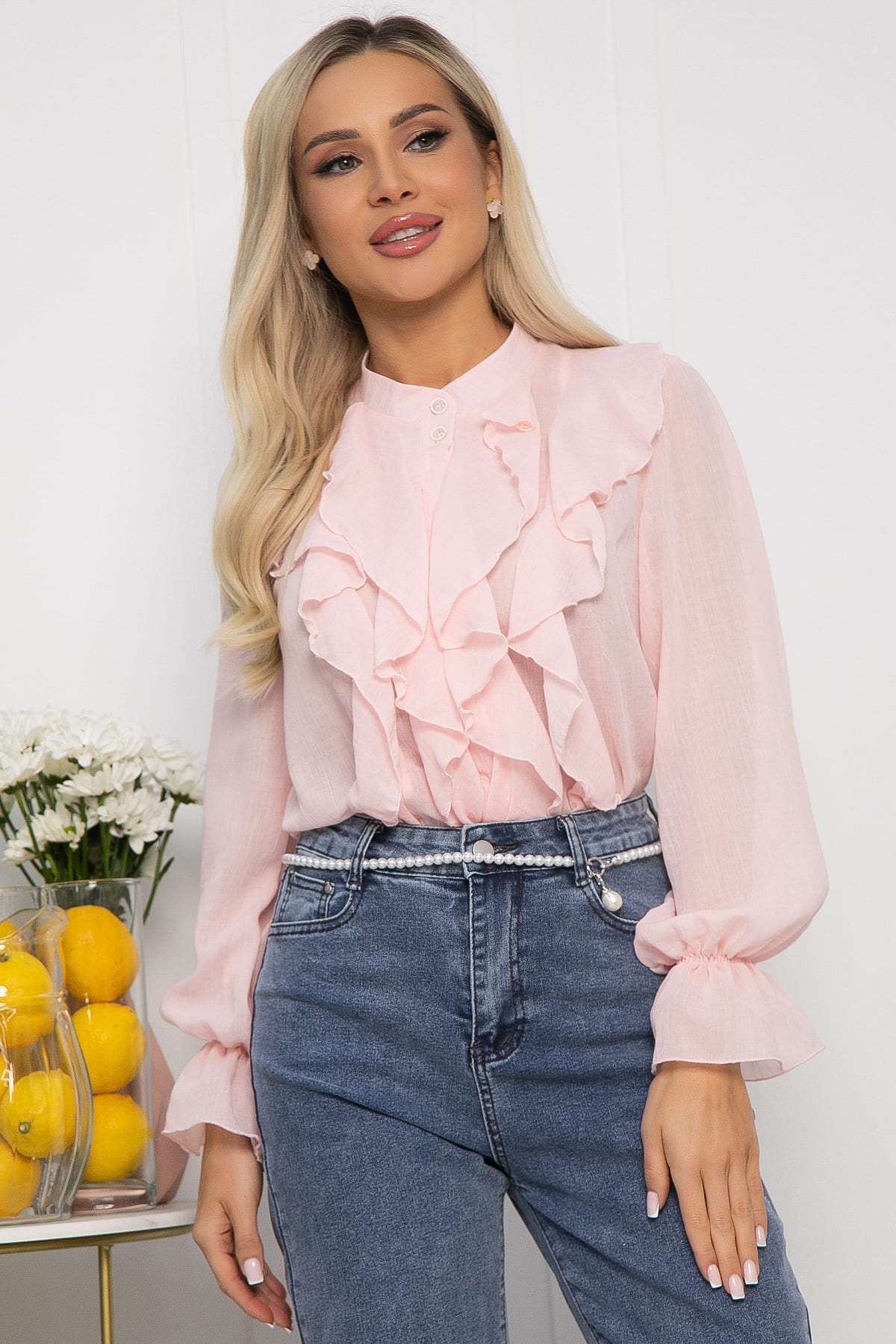 Легкая блуза из натурального хлопка с воланами украсит ваш летний гардероб. С ней можно создать много образов, как повседневных, так и нарядных. Благодаря натуральному составу, материал изделия приятно носить, а также в нем комфортно жаркими летними днями. Декоративные элементы в виде воланов на груди и рукавов-клеш добавляют образу женственности и уникальности.