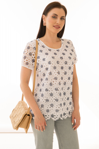 Блуза "Полёт фантазии" (белая, синее кружево) Б2351
