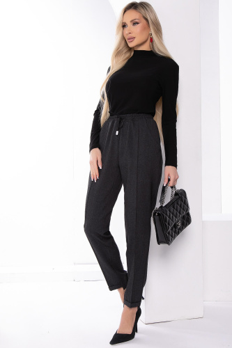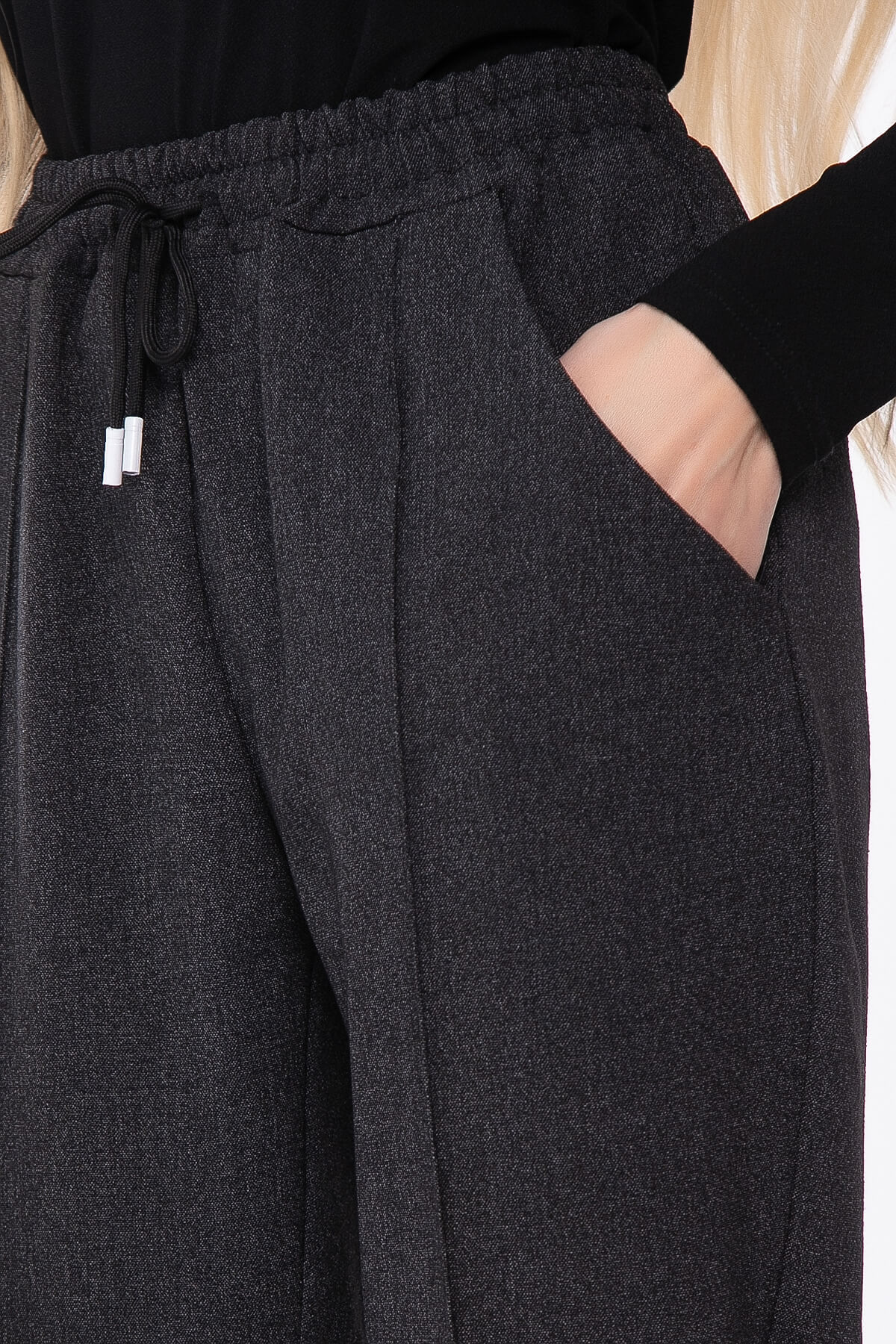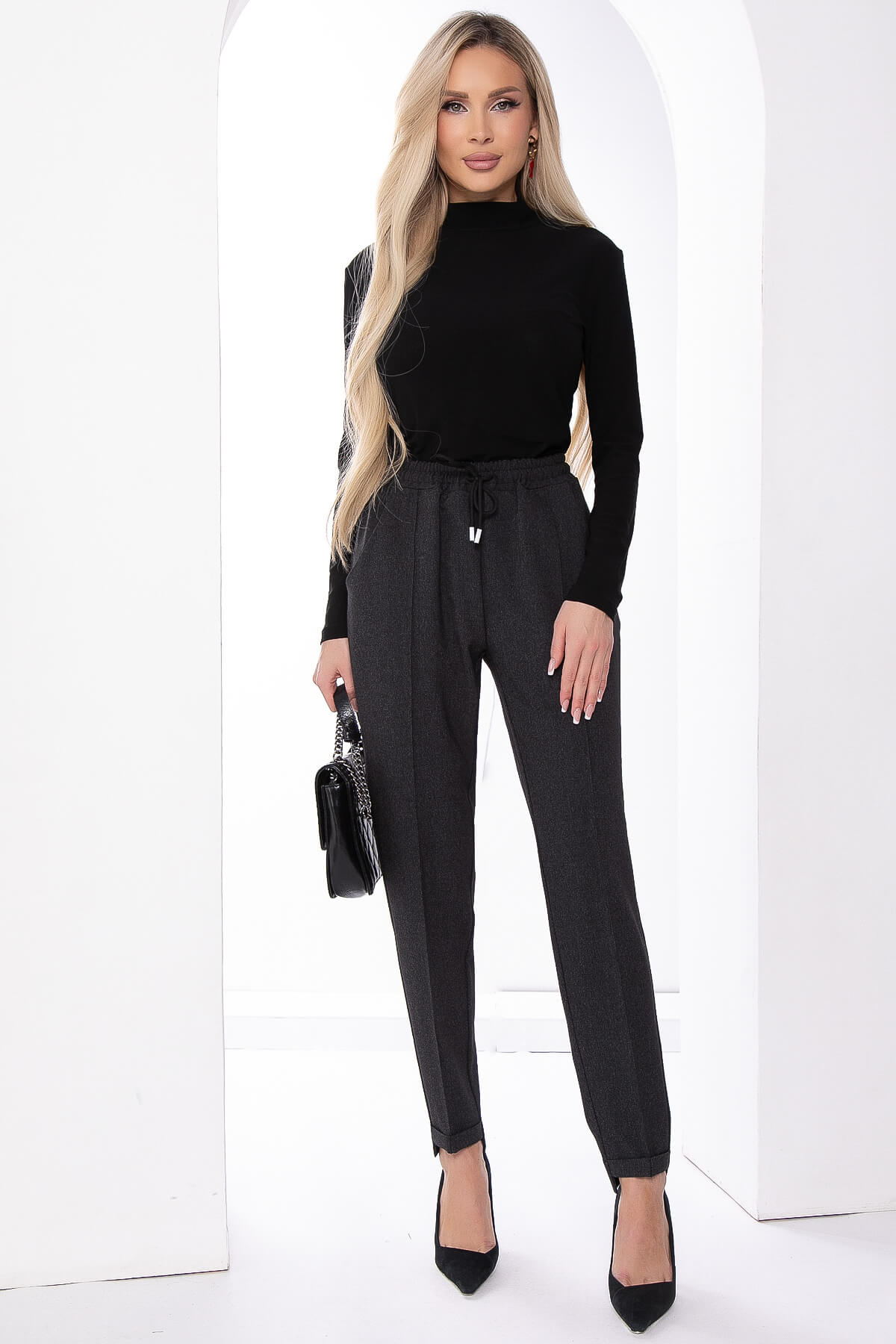 Стильные брюки из костюмной ткани для повседневного образа. Удобная талия на резинке с кулиской подчеркивает достоинства фигуры Ассиметричный низ брюк завершает модный стиль. Подбирая разнообразный верх, можно создавать множество стильных образов. Брюки зауженные.