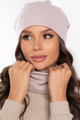 Мягкий трикотажный комплект, состоящий из шапки и снуда. Снуд позволит защитить шею от ветра. Приятный цвет комплекта придаст образу нежности. Отлично сочетается практически с любым вариантом верхней одежды. Шапка прекрасно прилегает к голове, не сдавливая её.