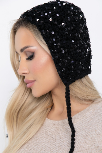 Чепчик с пайетками (черный) Ч01