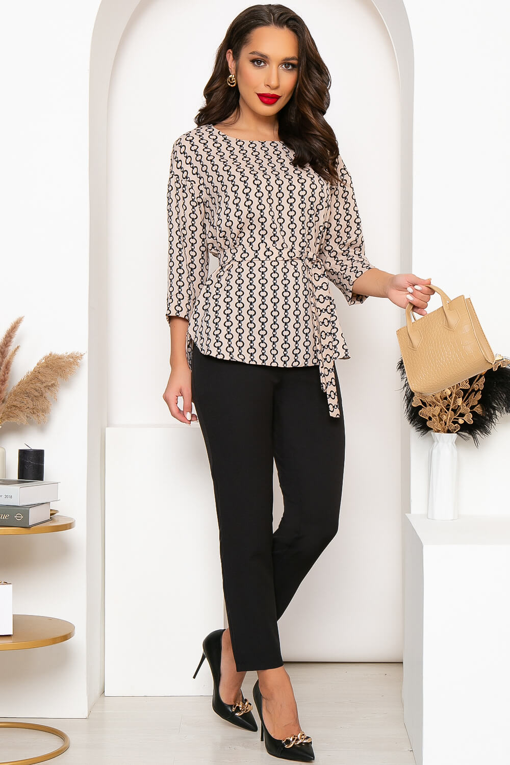 Цвет: брюки: чёрный, блуза: бежевый, чёрный.