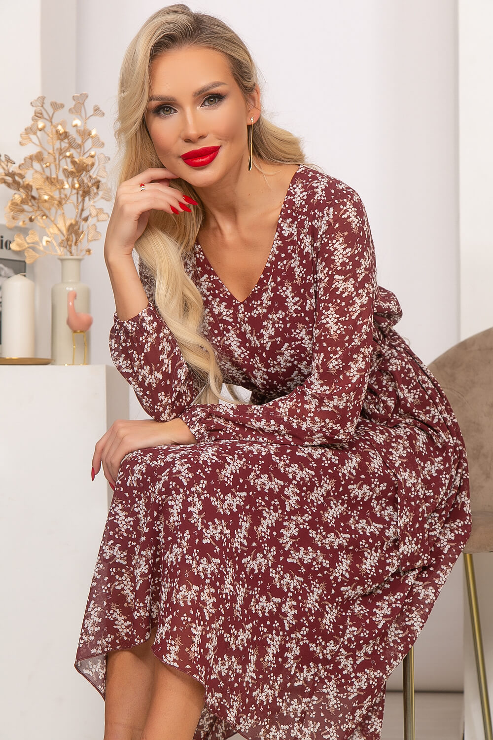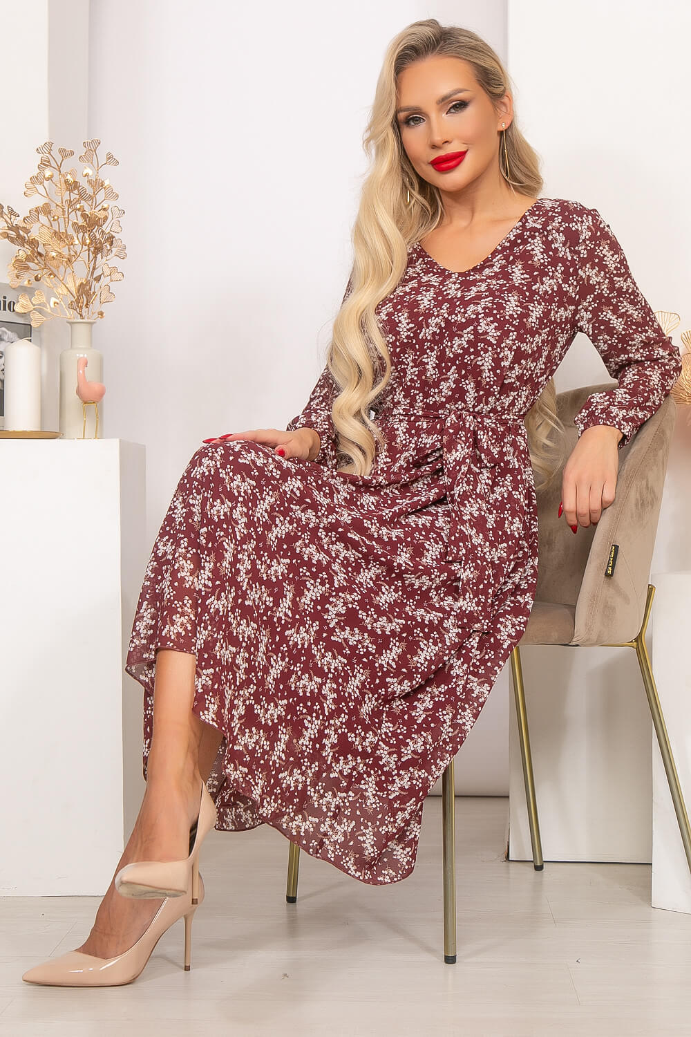 Шифоновое летящее платье идеально подчёркивающее Вашу женственность. Платье свободного силуэта на подкладке. Мягкий V-образный вырез горловины красиво открывает зону декольте и Ваши ключицы. Длинный, втачной рукав, низ на резинке. Пояс из основной ткани входит в комплект.
