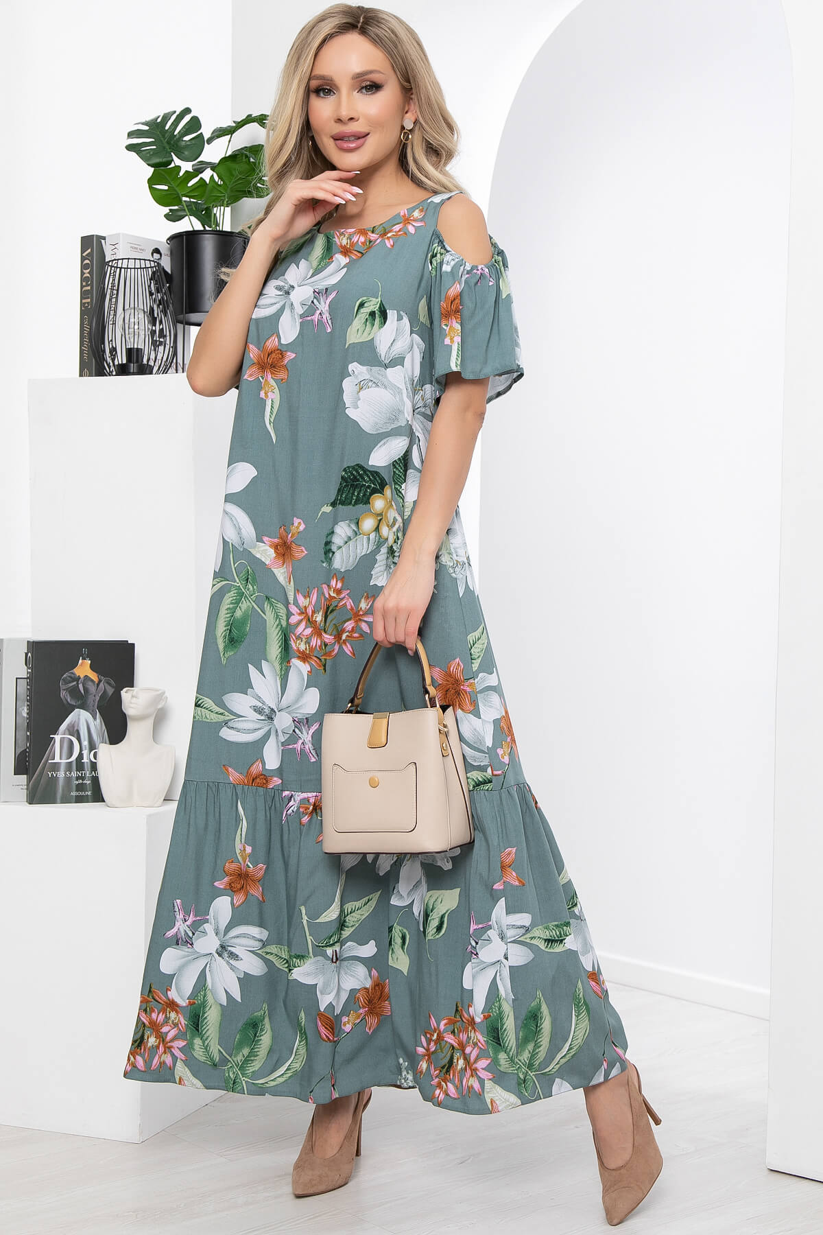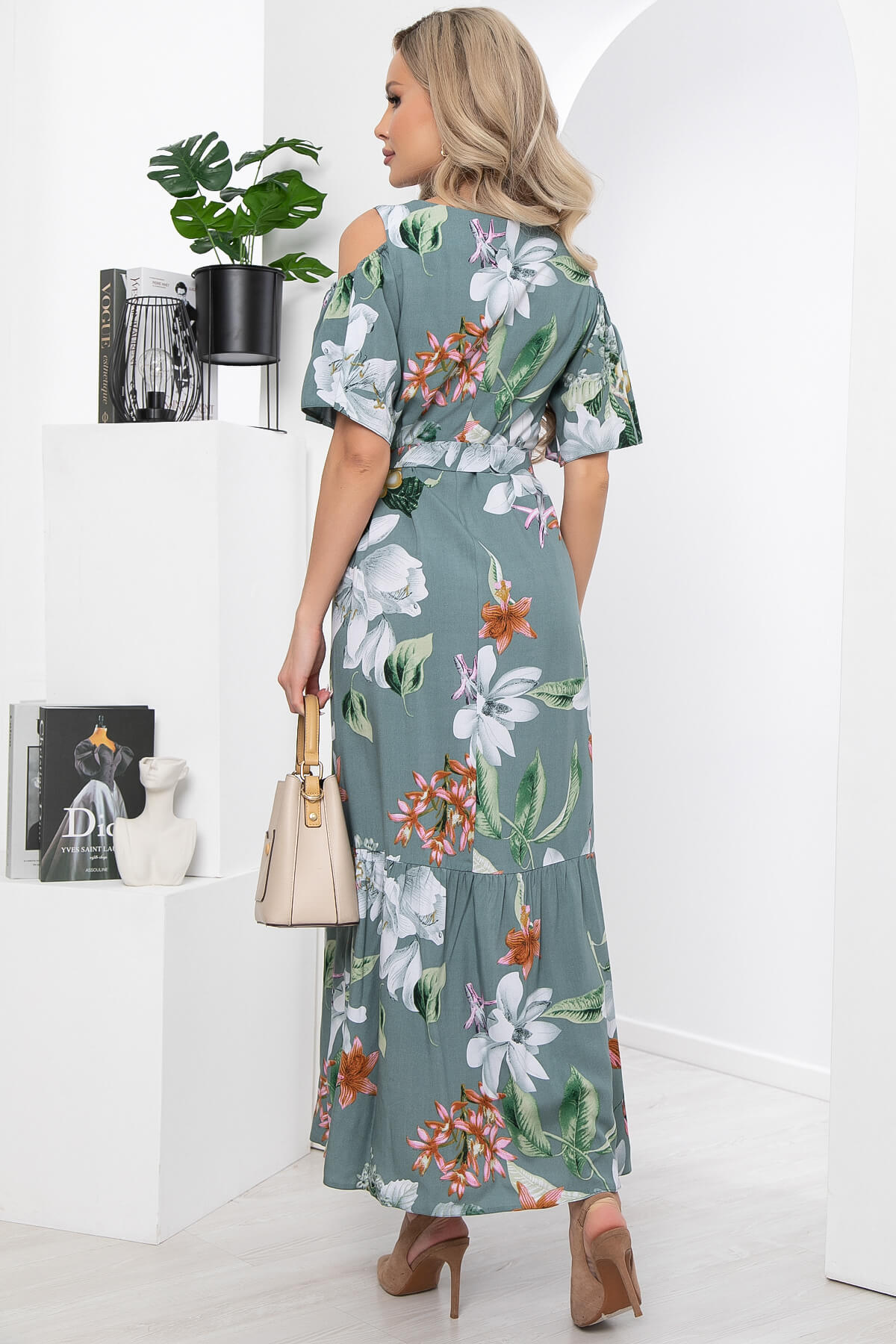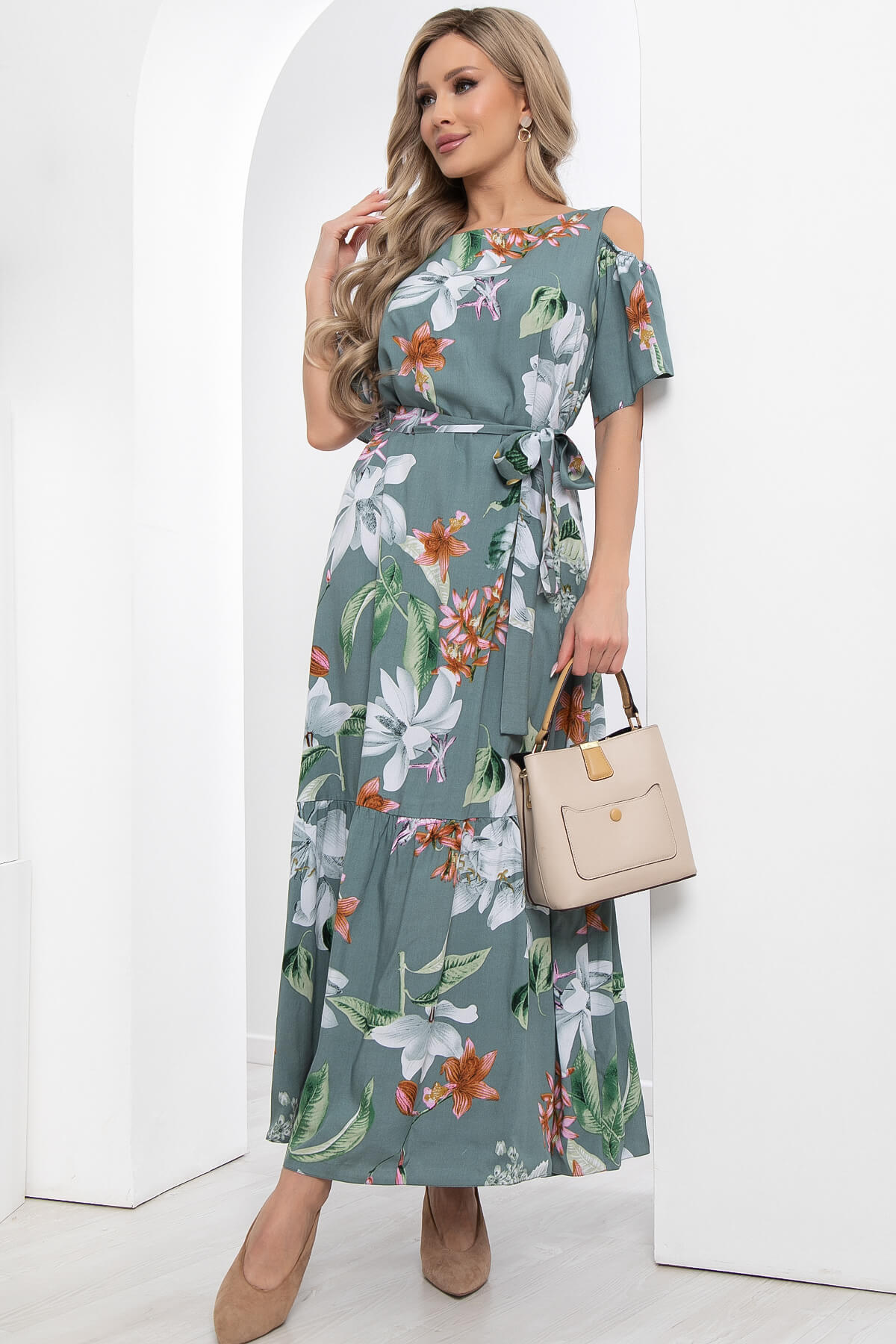 Платье "Марианна" (олива/цветы) НЬЮ П5872