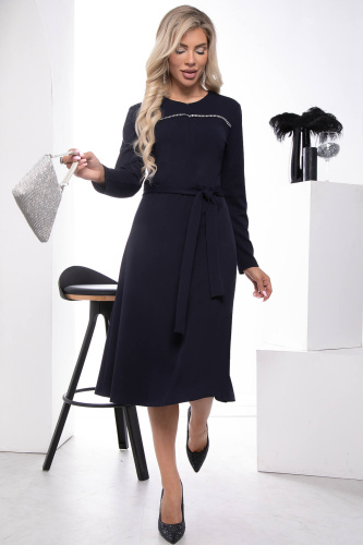 Очаровательно платье из трикотажа обязательно впишется в ваш повседневный гардероб. Модель имеет длинный втачной рукав. Изделие украшают декоративные элементы на груди, что позволяет создавать с этим платьем невероятно женственные и роскошные праздничные образы. Потайная молния на груди позволяет подчеркнуть зону декольте.
