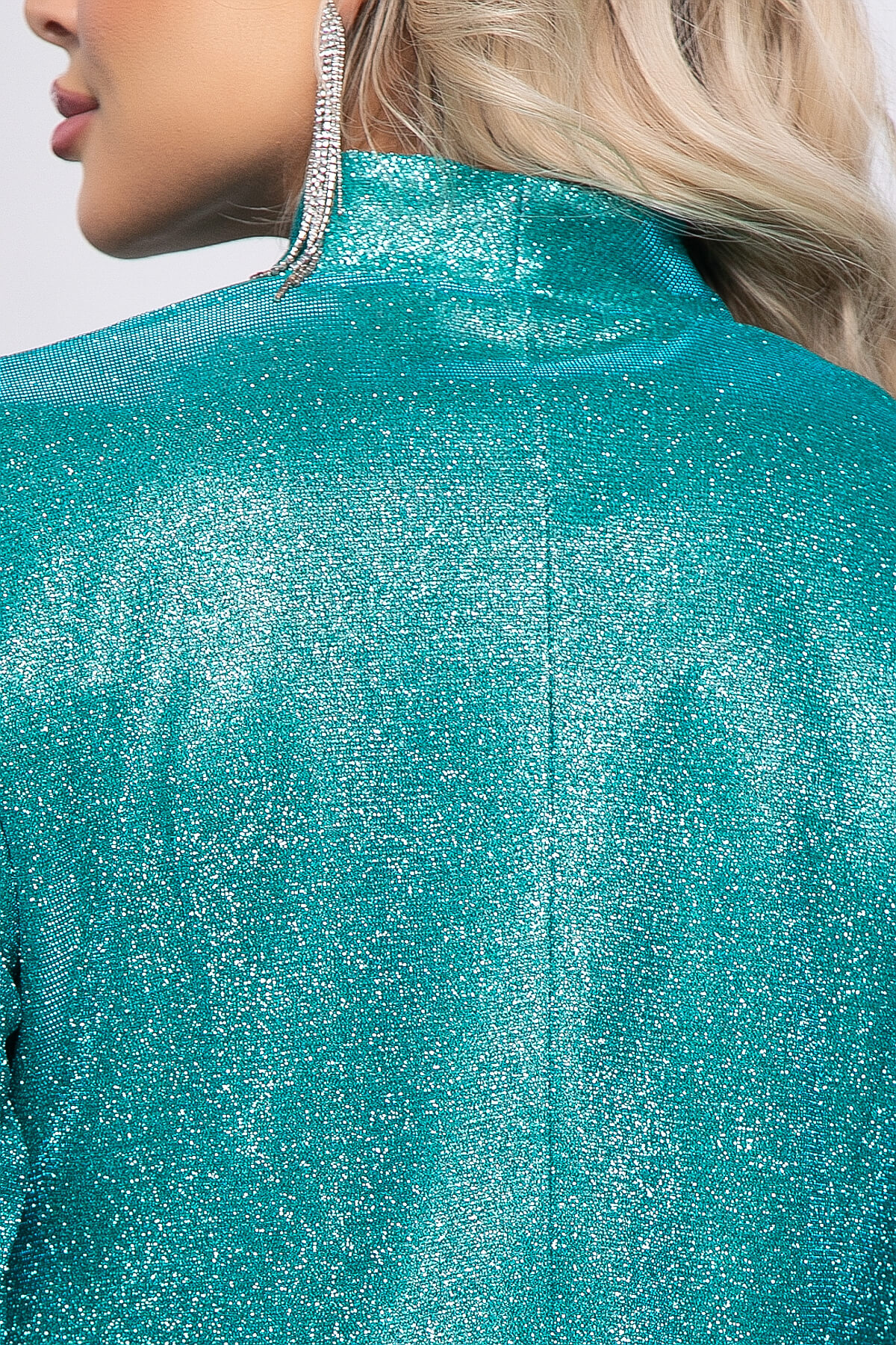 Неповторимый образ гарантирован! Невероятно красивый бирюзовый оттенок выглядит ярко и стильно! Рукав втачной, три четверти. По низу изделия разрез, который придаст образу игривости. В комплект входит пояс из основной ткани с пряжкой, который подчеркнет все преимущества фигуры.