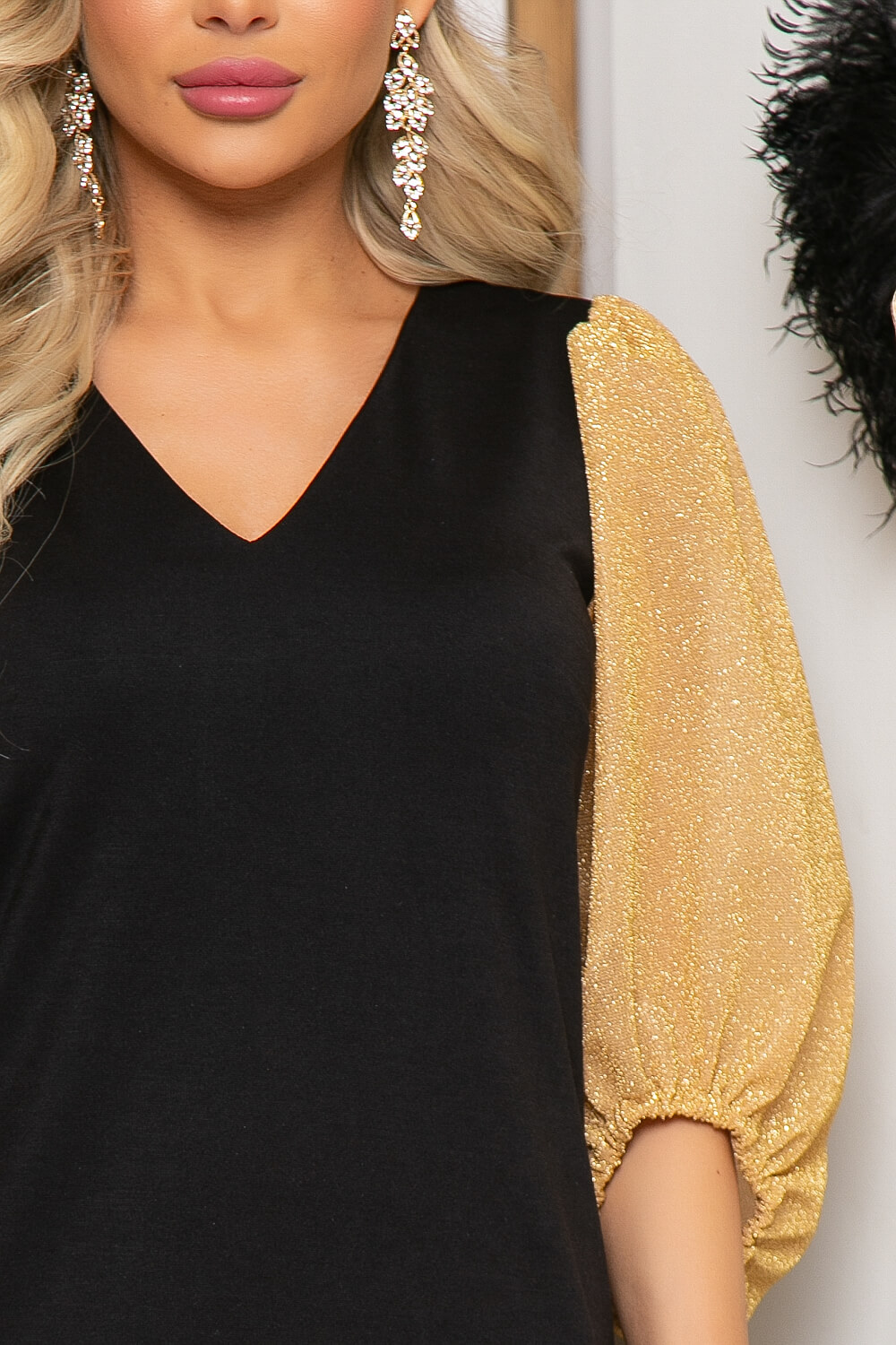 Специально для ценителей классики платье "Магия красоты" в новом исполнении. Основа платья выполнена из трикотажной ткани классического чёрного цвета. Украшением данной модели являются широкие мерцающие рукава. Красивый V-образный вырез горловины. Разрез по ножке добавит эффектность в Ваш вечерний образ. Пояс из основной ткани входит в комплект.