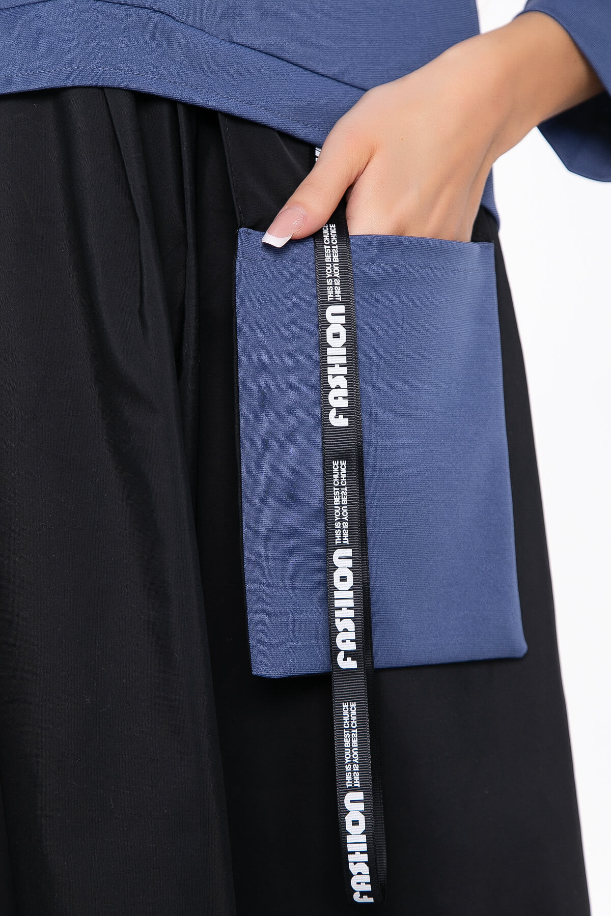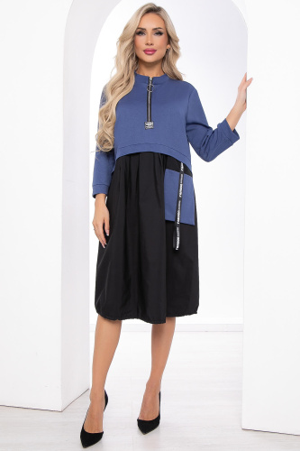 Повседневное платье в стиле спорт-шик из комбинированных материалов: плотного трикотажа и плащевки. Модель платья свободного кроя с контрастным накладным карманом, который декорирован дополнительным элементом. Такой фасон прекрасно подойдёт для повседневных мероприятий, будет хорошо сочетаться, как с обувью на плоском ходу, так и с каблуком. Плащевка неприхотлива в уходе: любые брызги или капли с неё можно удалить обычной влажной салфеткой.