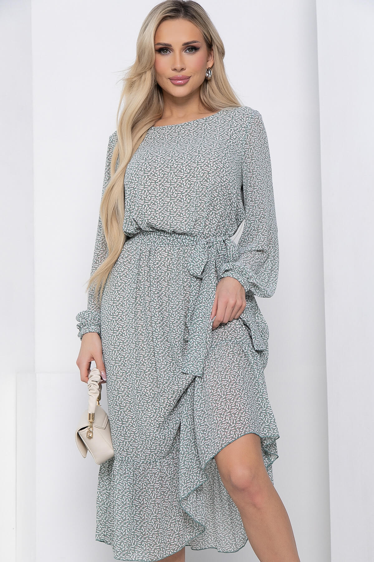 Летящее платье из шифона с цветочным принтом украсит Ваш образ на прогулке или неформальной встрече. Шифоновые платья хороши тем, что актуальны круглый год, а также выглядят они женственно и элегантно. Платье свободного кроя, рукав втачной, длинный на резинке. Платье на подкладке. Пояс из основной ткани входит в комплект.