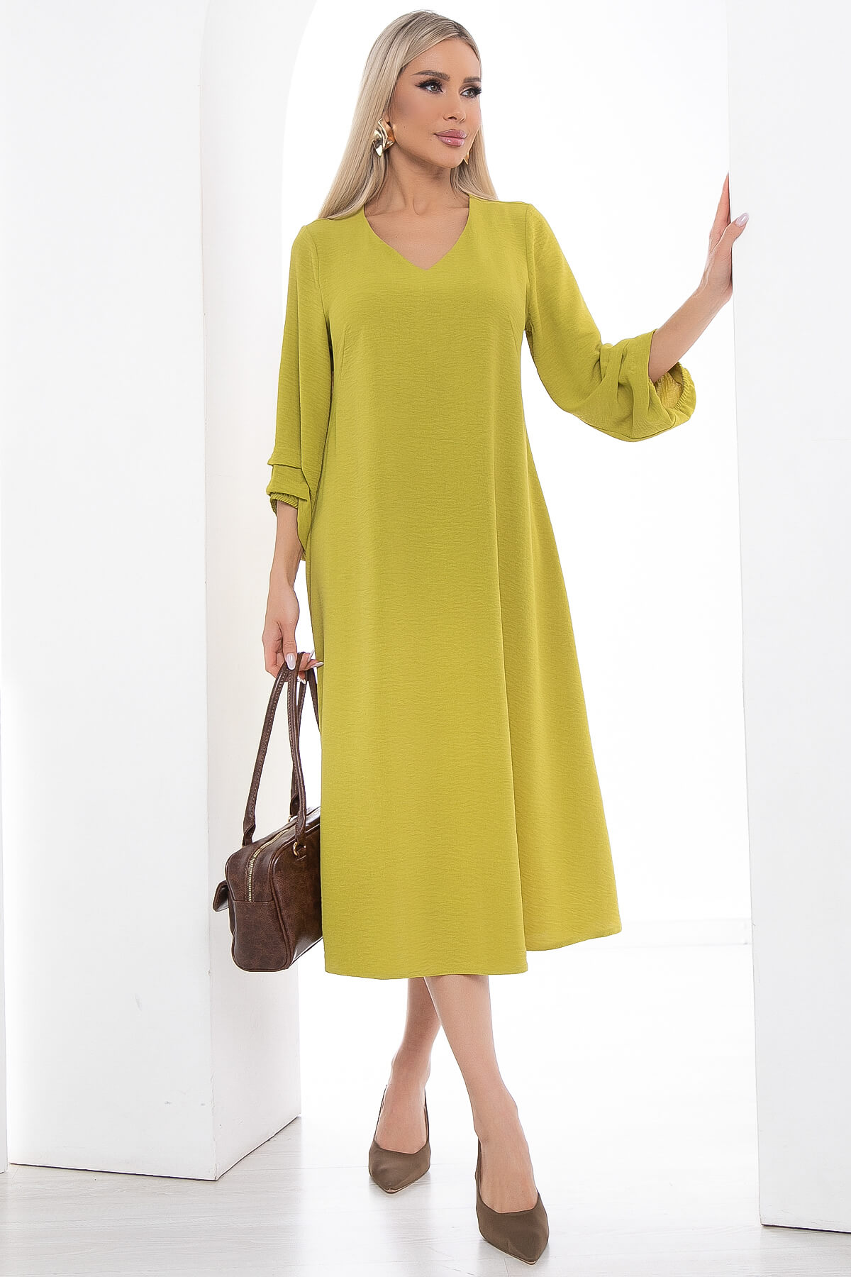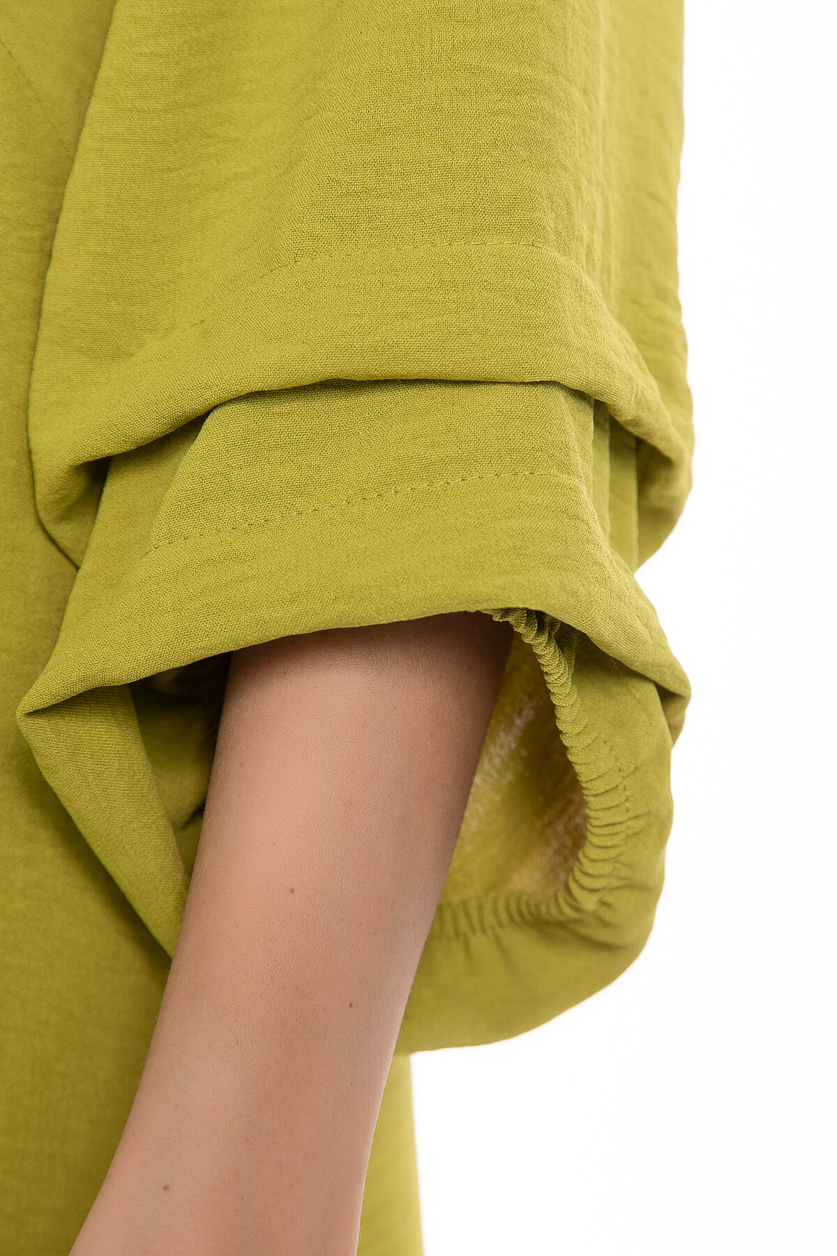 Платье свободного силуэта с V-образным вырезом горловины, которое подчеркнёт красиво зону декольте и ваши ключицы. Рукав укороченный, втачной, две застроченные складки по рукаву, рукав на резинке по низу. Пояс из основной ткани входит в комплект.
