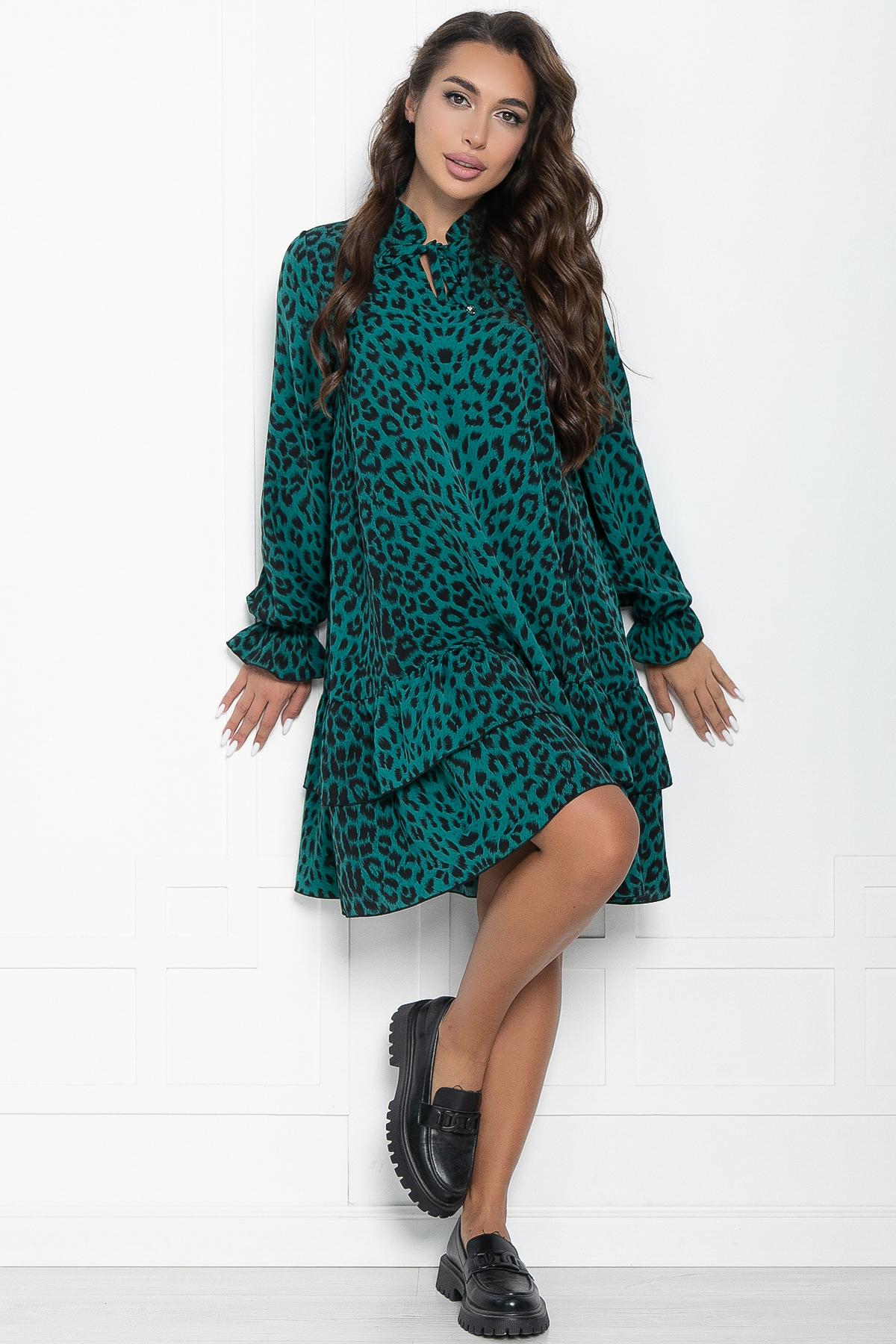 Универсальное платье в самом трендовом принте 2024 года! Свободное платье, украшенное воланами по низу изделия, длинный рукав так же декорирован воланом.