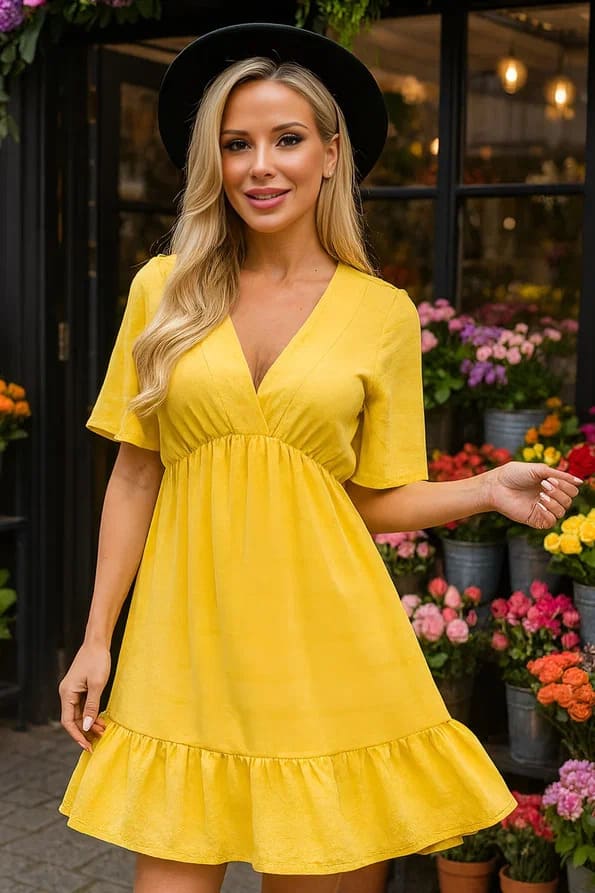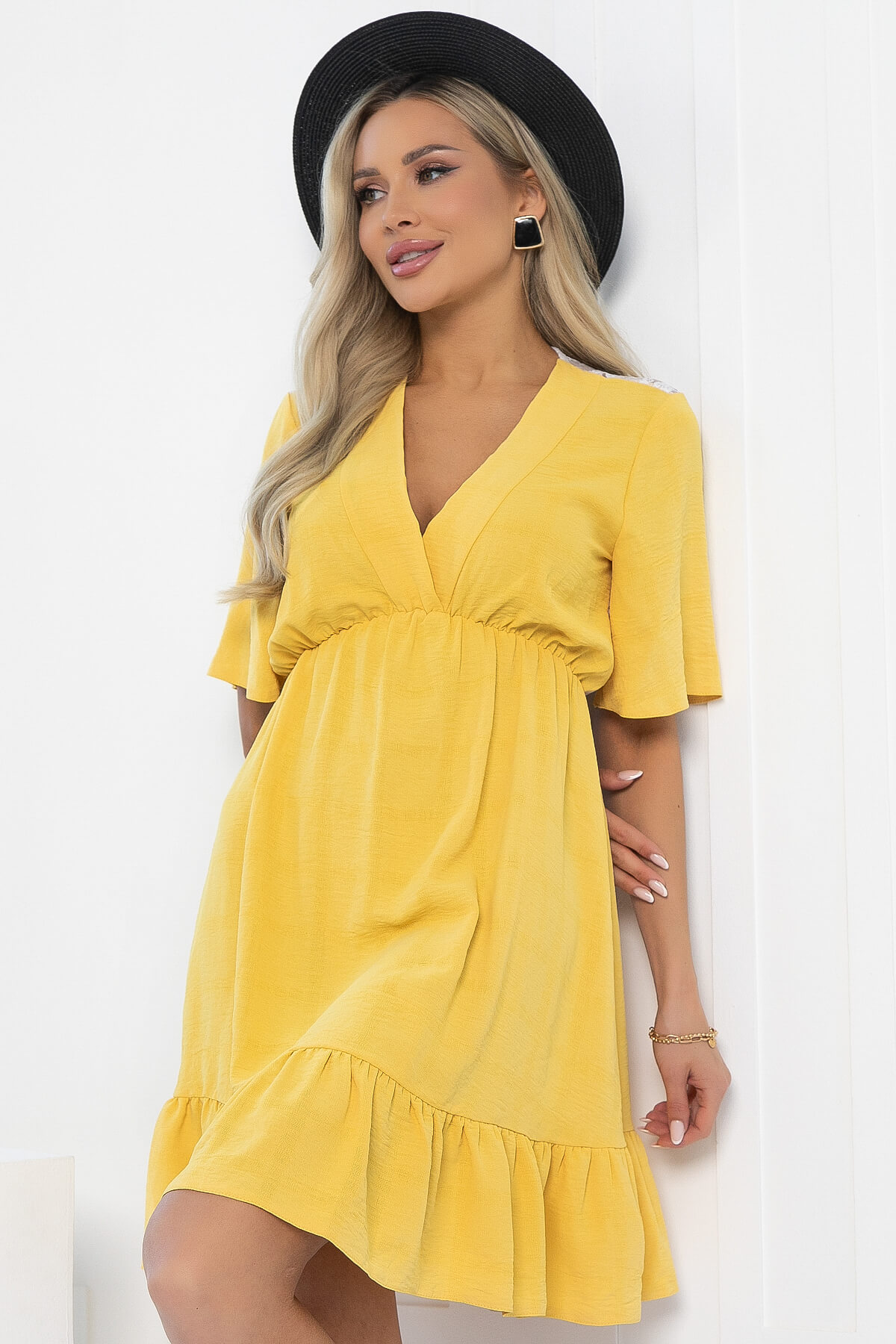Маленькое изящное платье с полупрозрачной спинкой для создания женственного образа на лето. Благодаря резинке по линии талии платье идеально садиться на фигуру и подчёркивает все её достоинства. Рукав втачной, укороченный. По низу юбки - волан.