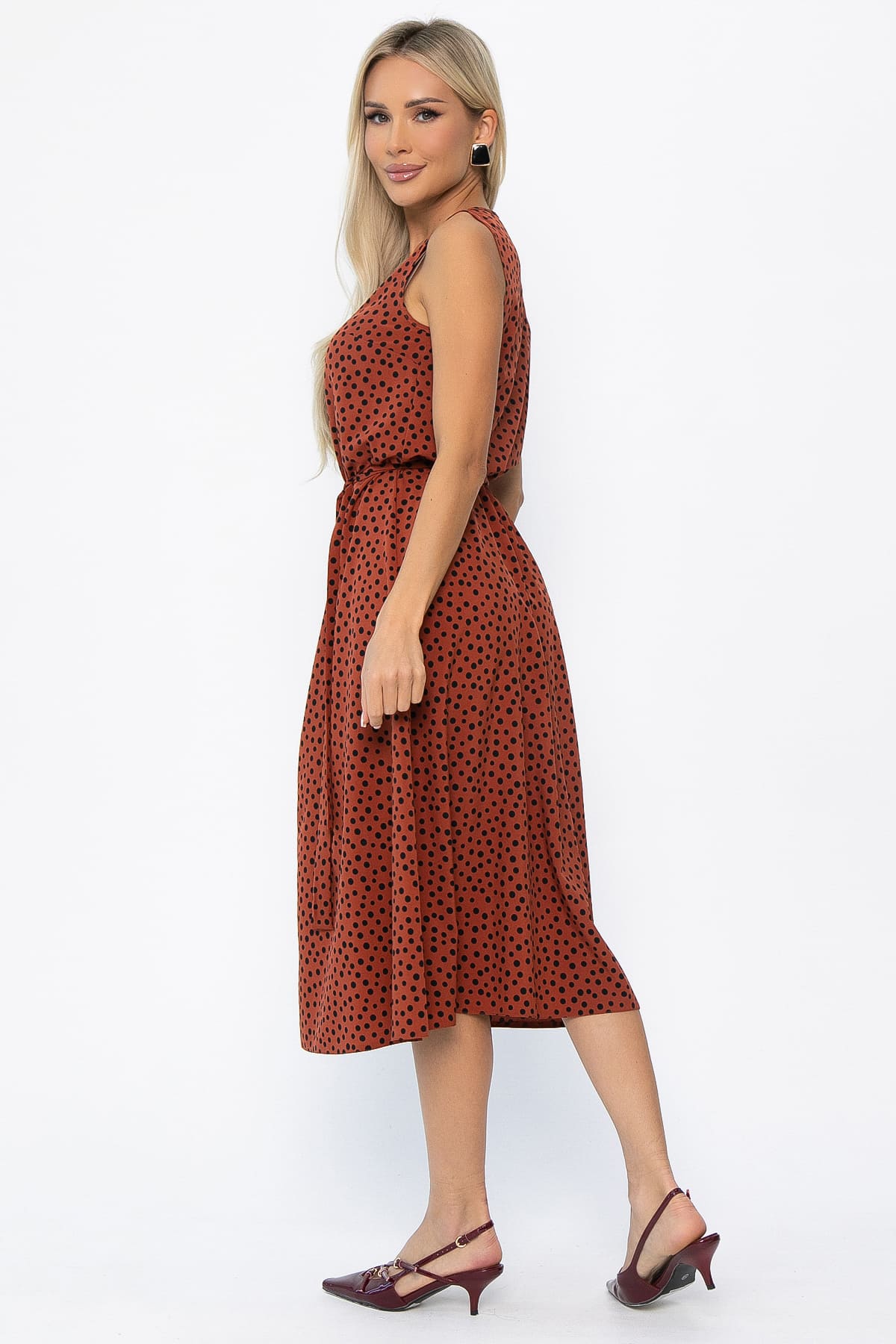 Вы точно полюбите это легкое и воздушное платье-сарафан в терракотовом цвете! Модель дополнена резинкой по талии, обеспечивающей комфортную посадку. В комплект входит пояс, с помощью которого можно акцентировать талию. Оно точно подойдет на любой случай. Платье отлично будет смотреться как с кедами, так и с каблучком.