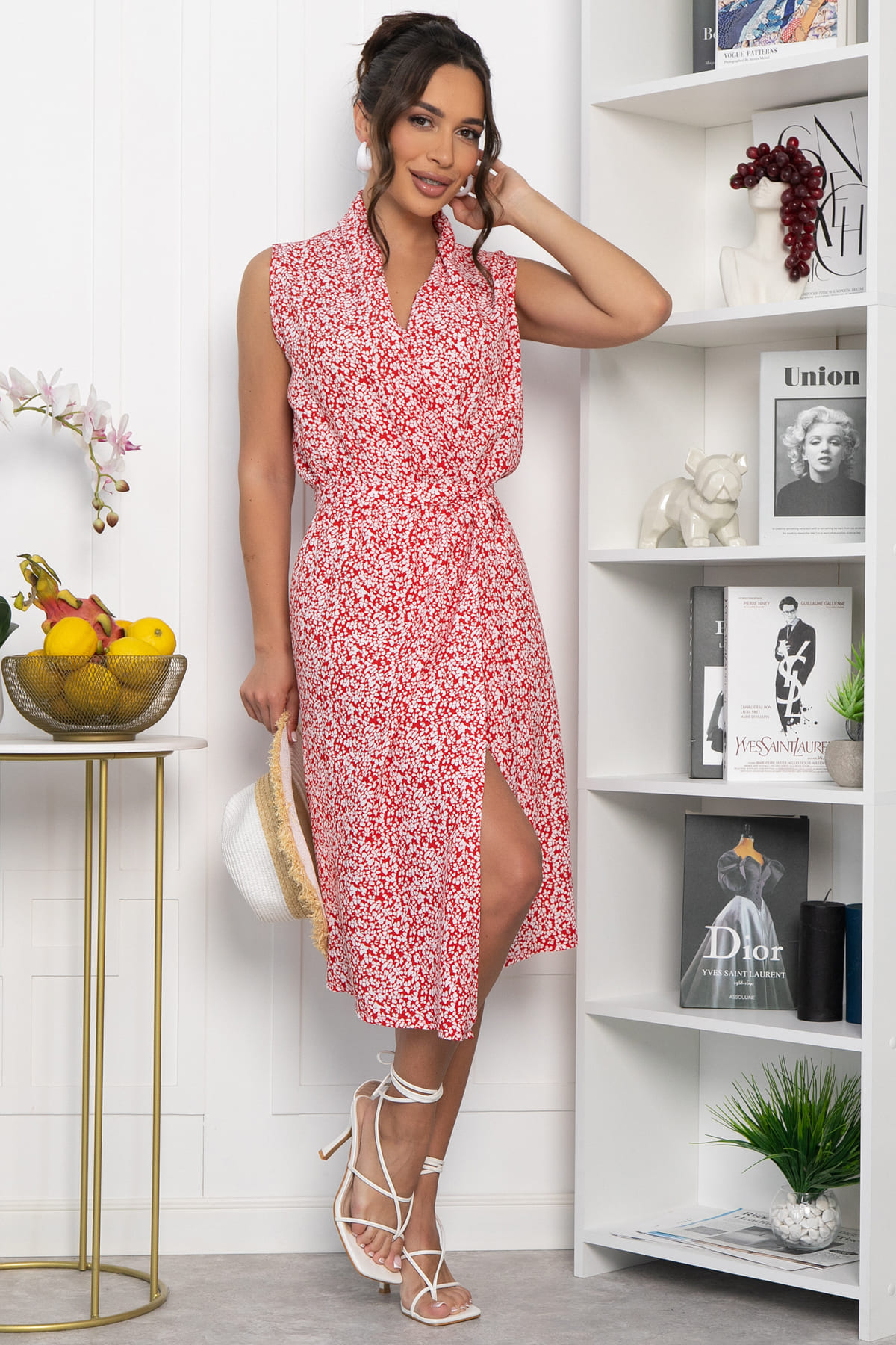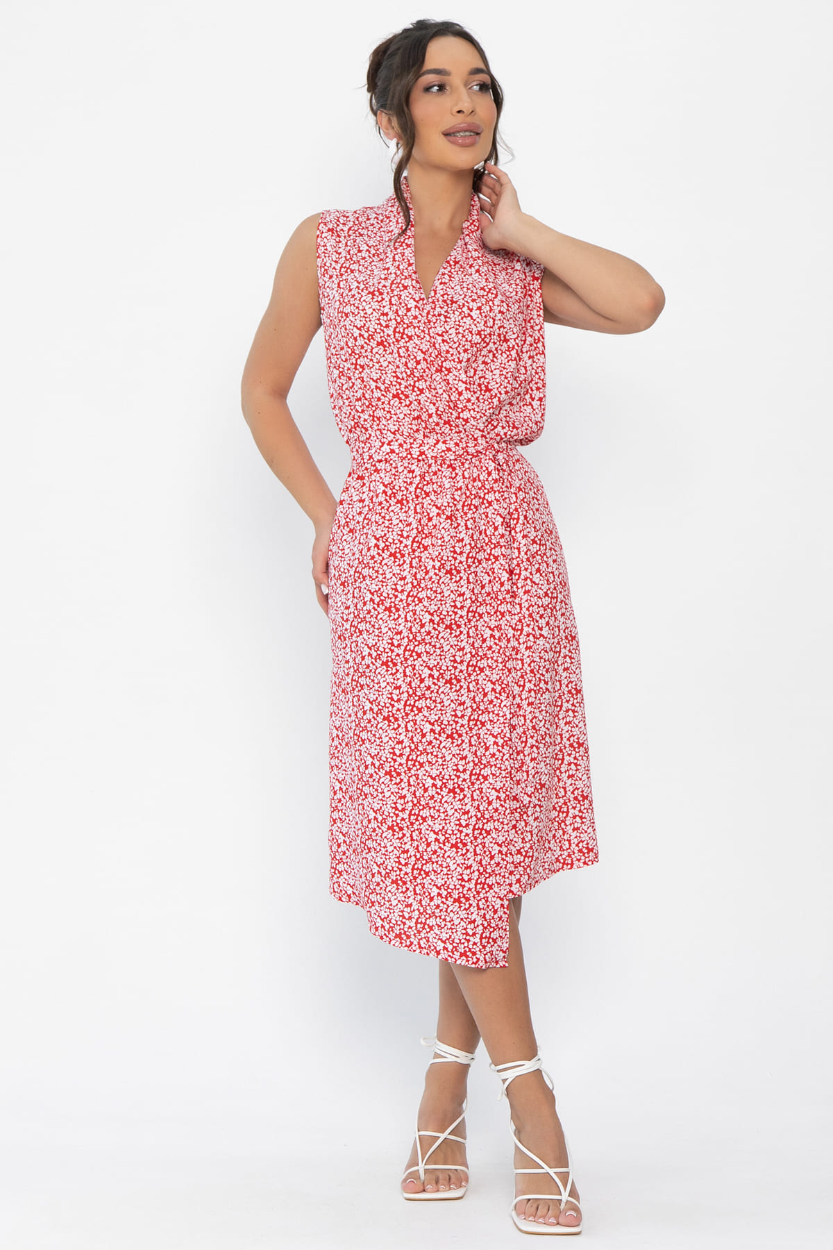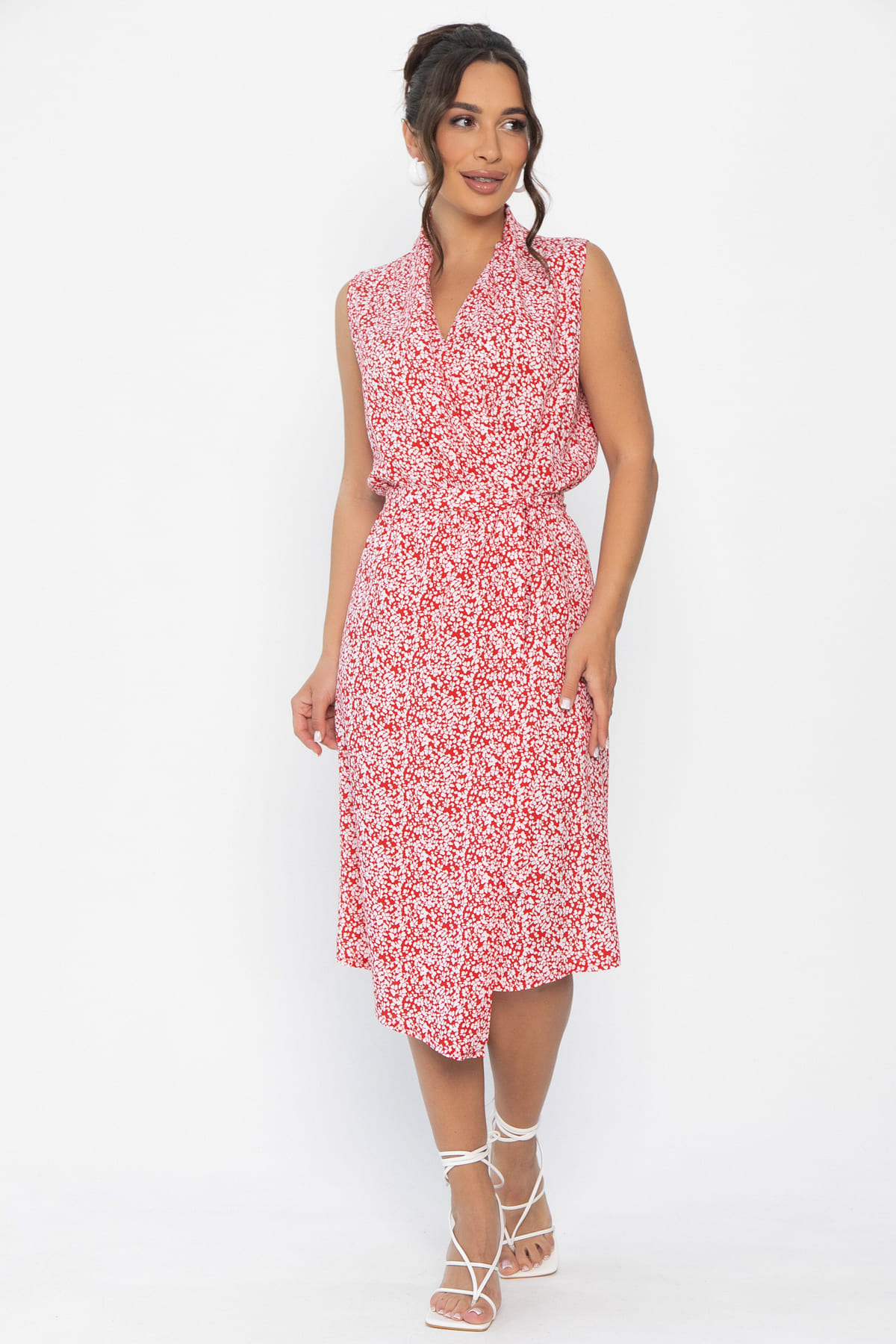 Элегантное платье без рукавов, выполненное в стильном дизайне на запах, идеально подходит для создания женственного образа. Драпировка на лифе придает изящество и подчеркивает фигуру, а резинка по линии талии обеспечивает комфортную посадку и акцентирует талию. Пояс в цвет платья завершает образ и добавляет нотку утонченности. Ассиметричный низ юбки добавляет динамики и оригинальности, делая это платье отличным выбором для особых случаев или повседневной носки. Сочетайте с любимыми аксессуарами и обувью для создания стильного ансамбля!