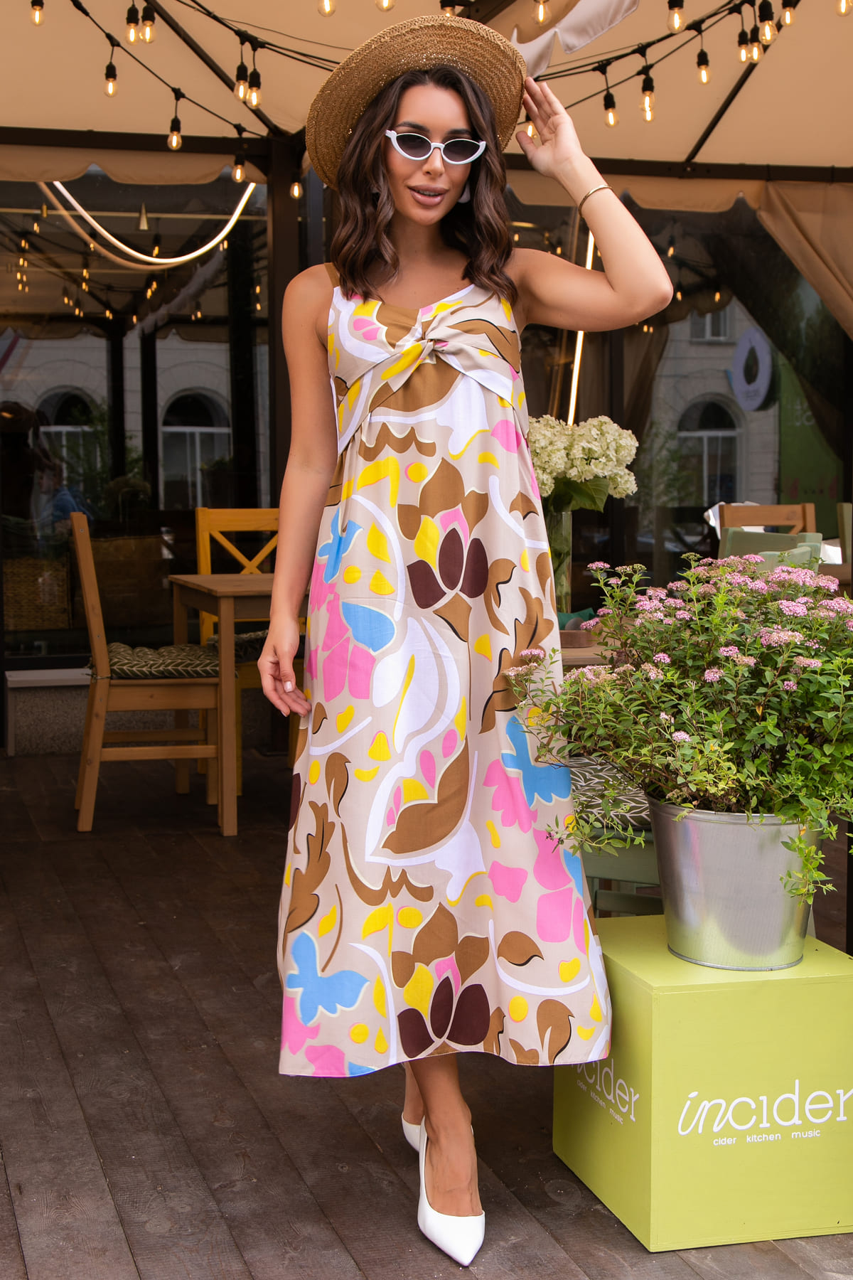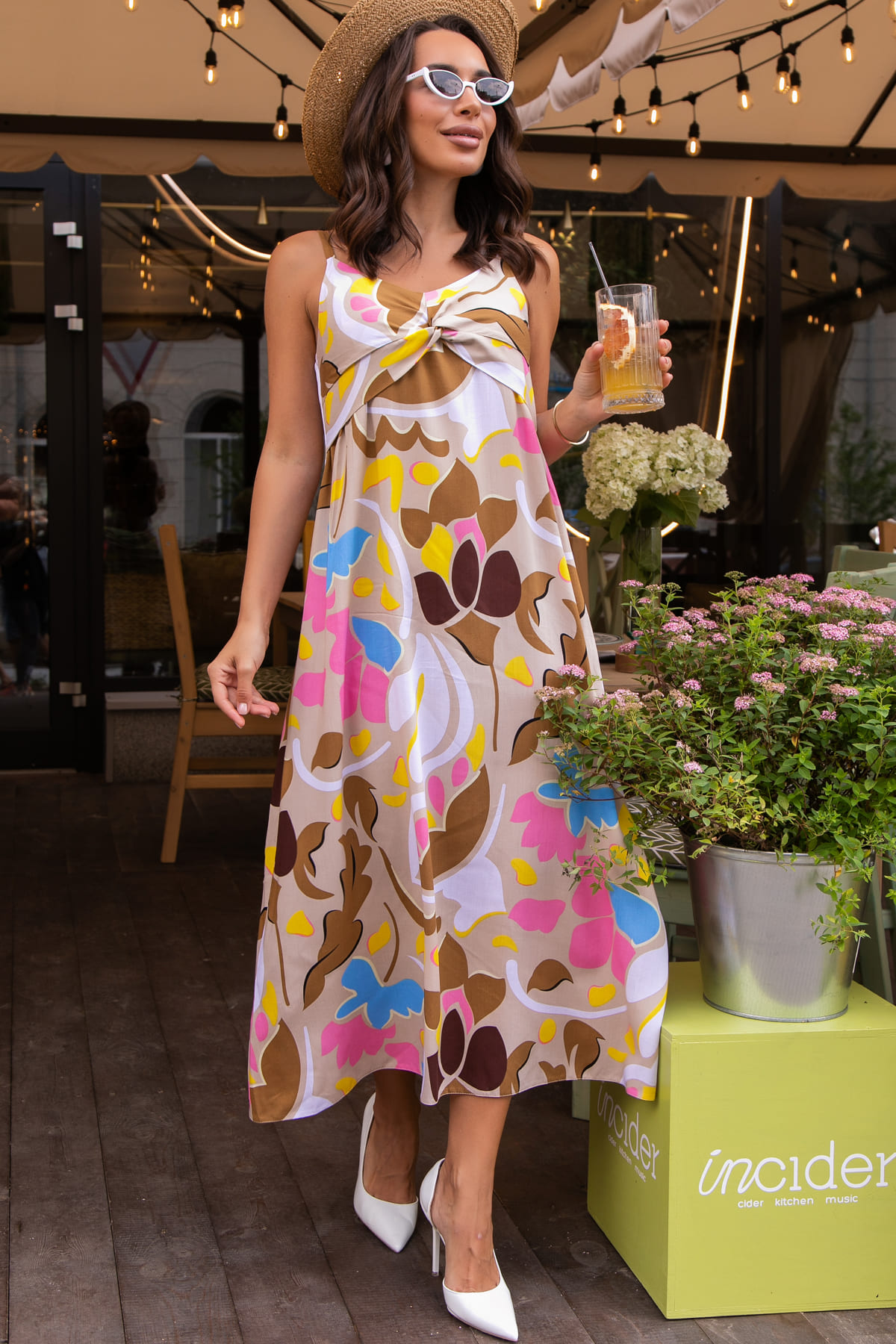 Элегантный женский сарафан создан для подчеркивания вашей красоты. Отделка переда лифа оформлена интересной драпировкой, а легкий материал дарит комфорт и свободу движений в жару. Тонкие бретели добавляют романтичности, а яркий цветочный принт — летнего настроения. Лямки не регулируются. Идеальный выбор для тех, кто хочет выглядеть элегантно и чувствовать себя свободно этим летом!