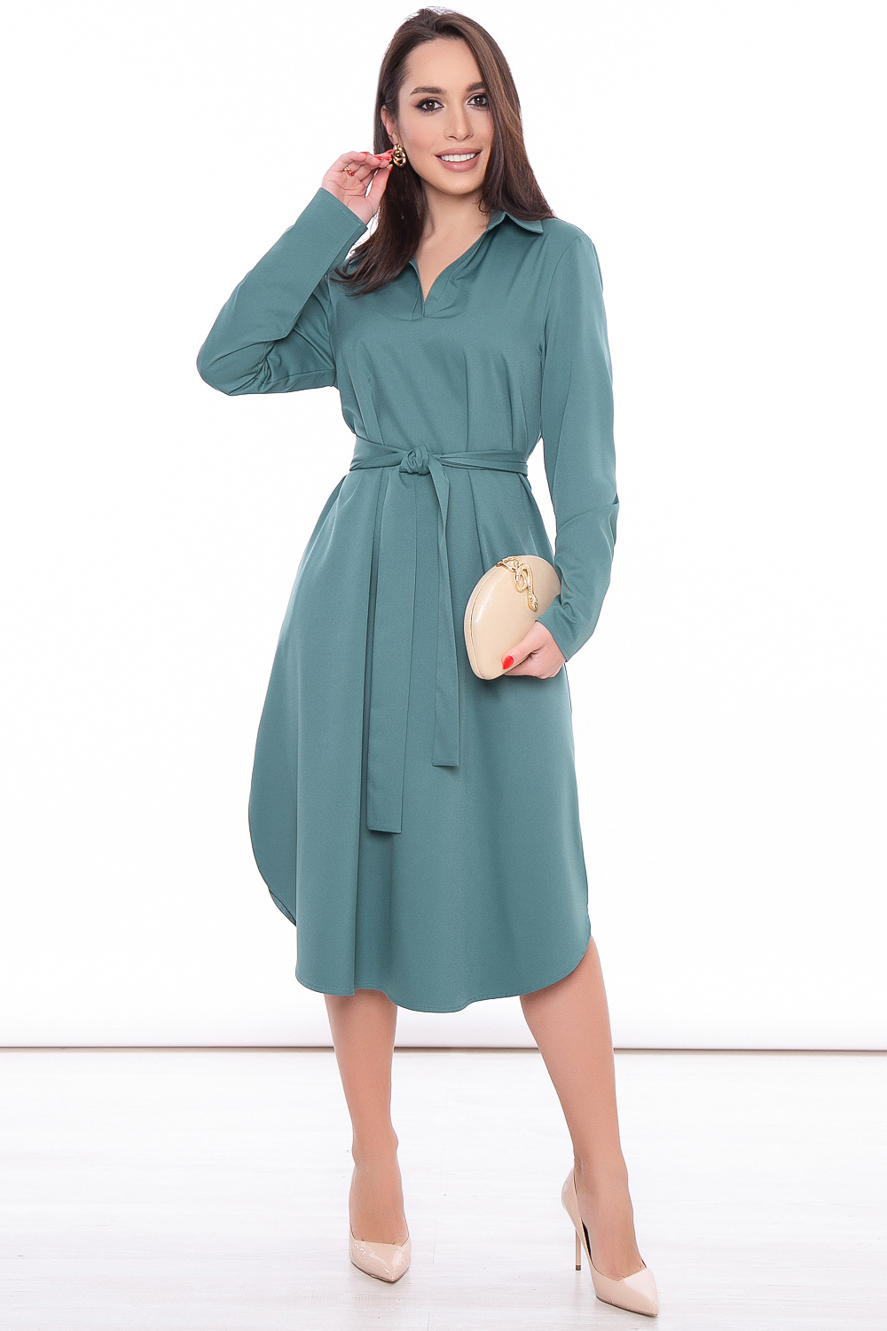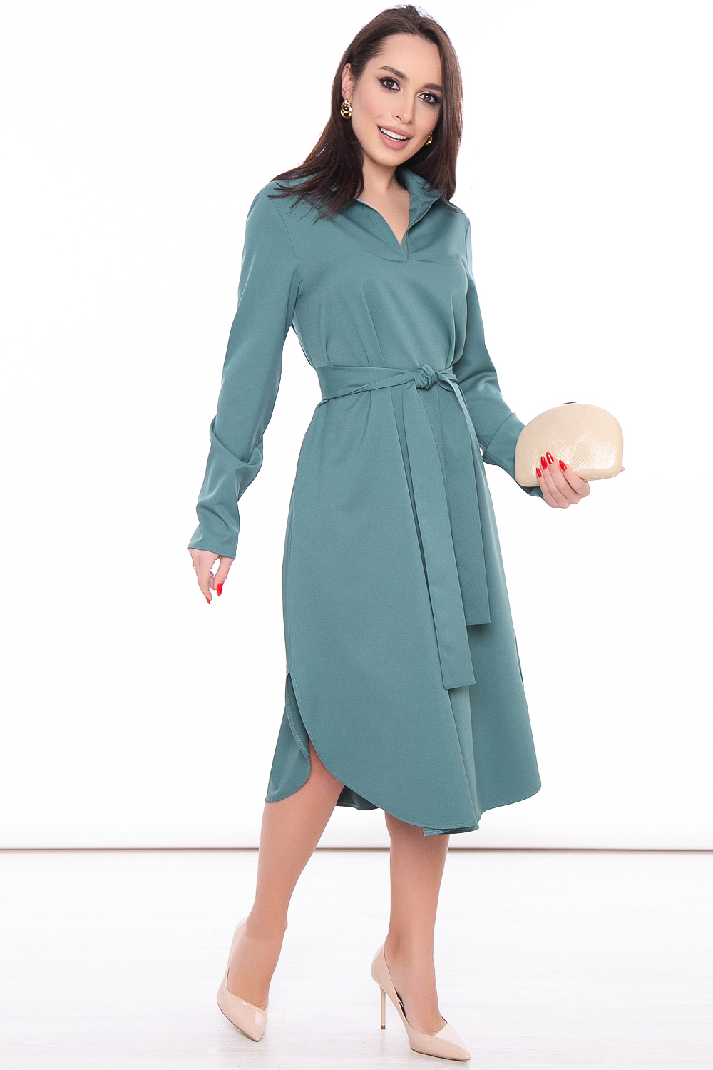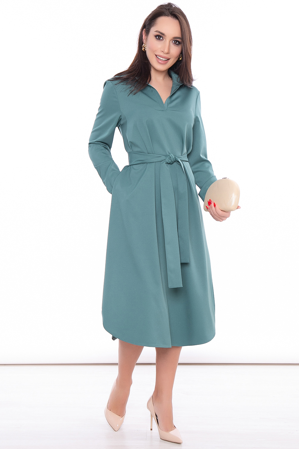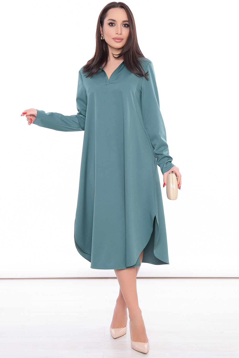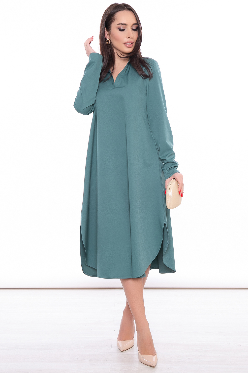 Оригинальное и очень эффектное платье, в котором Вы точно станете центром притяжения взглядов! Благодаря своему крою оно прекрасно "садится" на любом типе фигуры, скрывая все недостатки и подчёркивая достоинства. Платье А-силуэта, изящный V-образный вырез горловины с отложным воротничком красиво приоткрывает Ваши ключицы. Рукав-реглан, длинный, односторонняя складка по линии середины переда, которая создаёт иллюзию потайной застёжки. По бокам скруглённые разрезы, в боковых швах карманы;