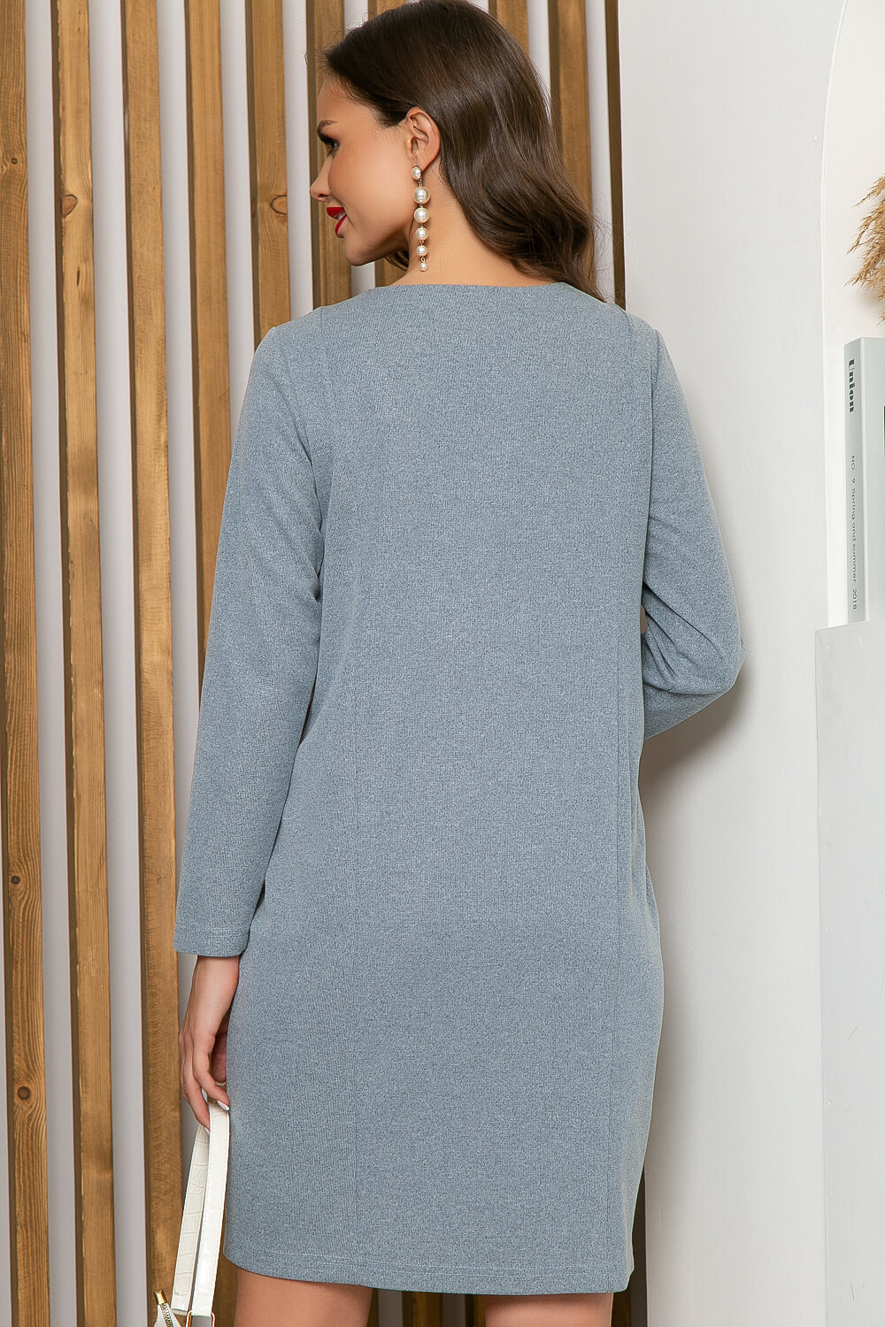 Платье-кокон средней длины - универсальный фасон повседневного платья, позволяющий скрыть небольшие недостатки фигуры, так как такой фасон не предполагает облегания. Платье имеет длинный втачной рукав, по переду имитация карманов. Классический округлый вырез горловины. В сочетании с плотными колготами и ботинками получается комфортный осенне-зимний образ.
