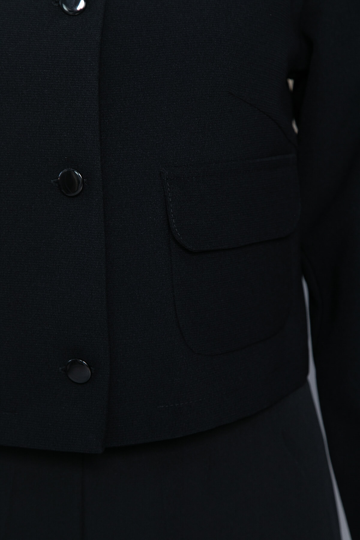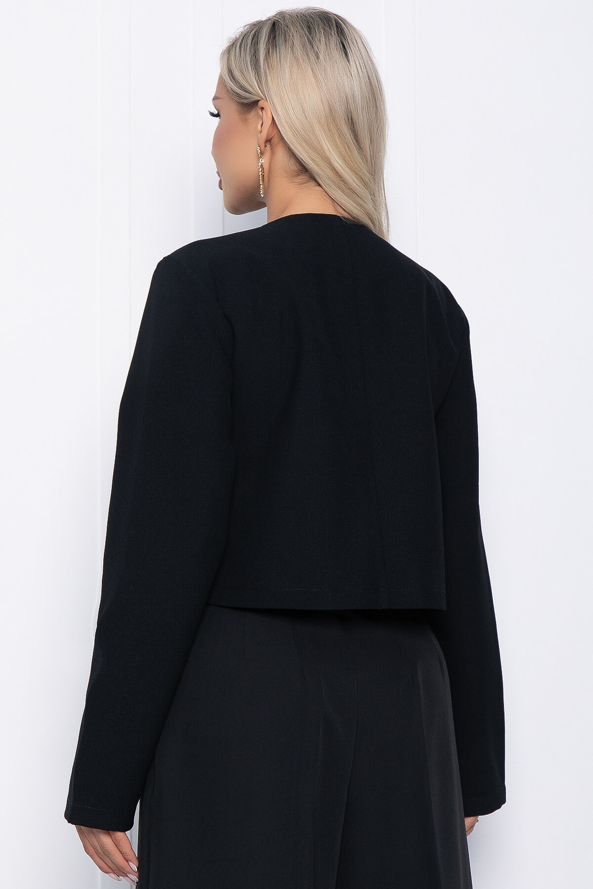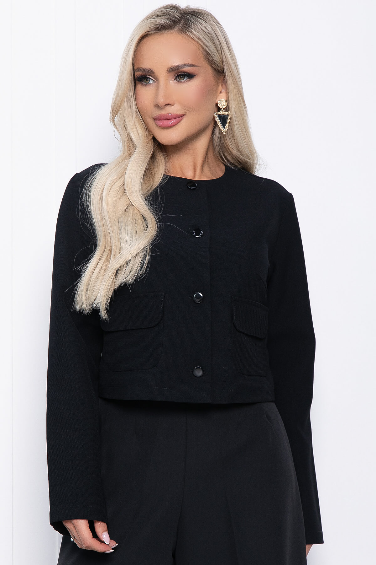 Укороченный жакет в чёрном оттенке идеален для любого сезона: осени, весны, лета и зимы! Жакет с накладными карманами универсален, поэтому будет отлично сочетаться с платьями, юбками и брюками. Жакет застёгивается на акцентные пуговицы. Длинный втачной рукав.